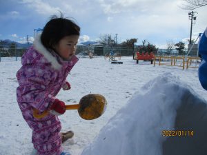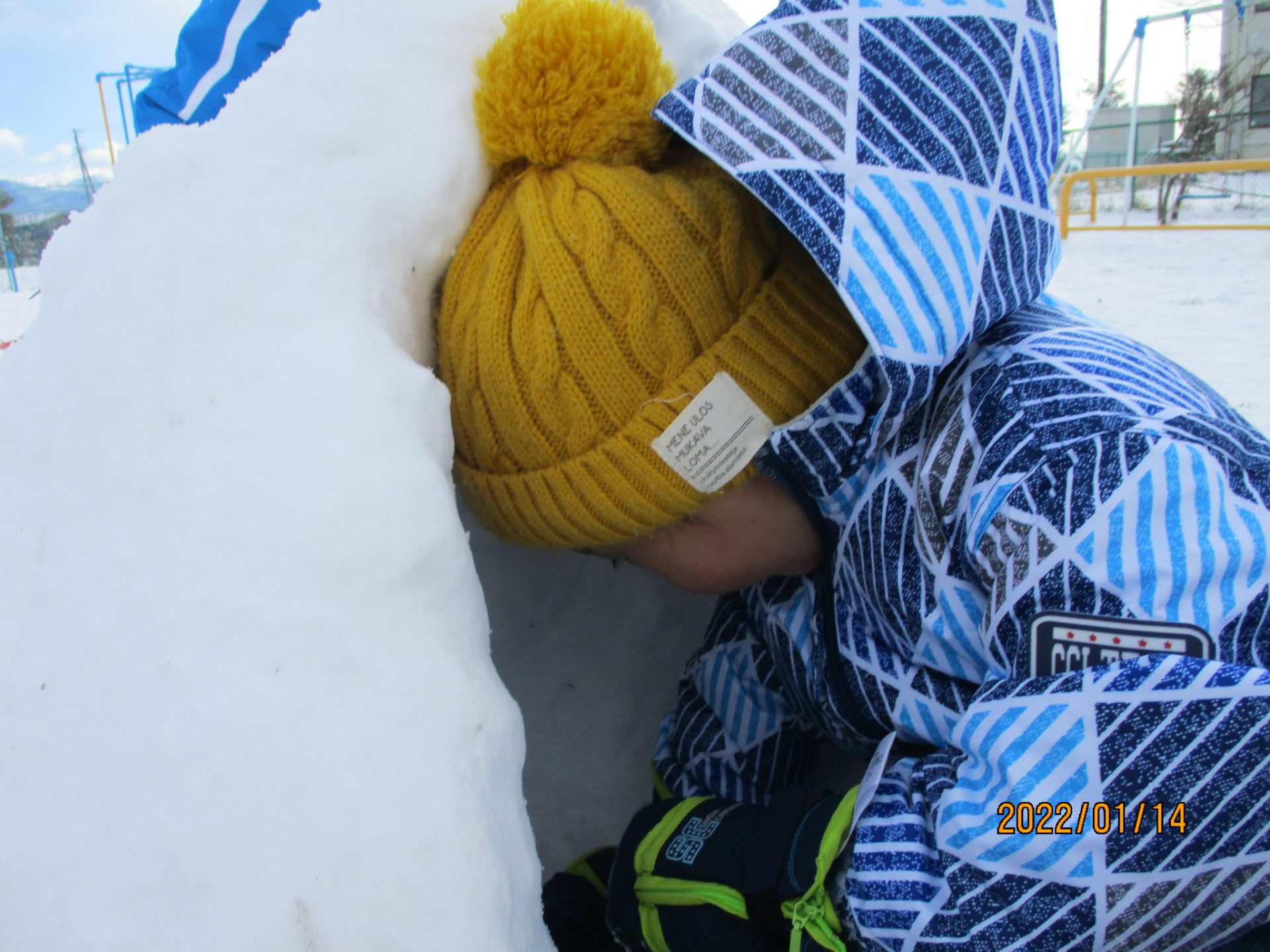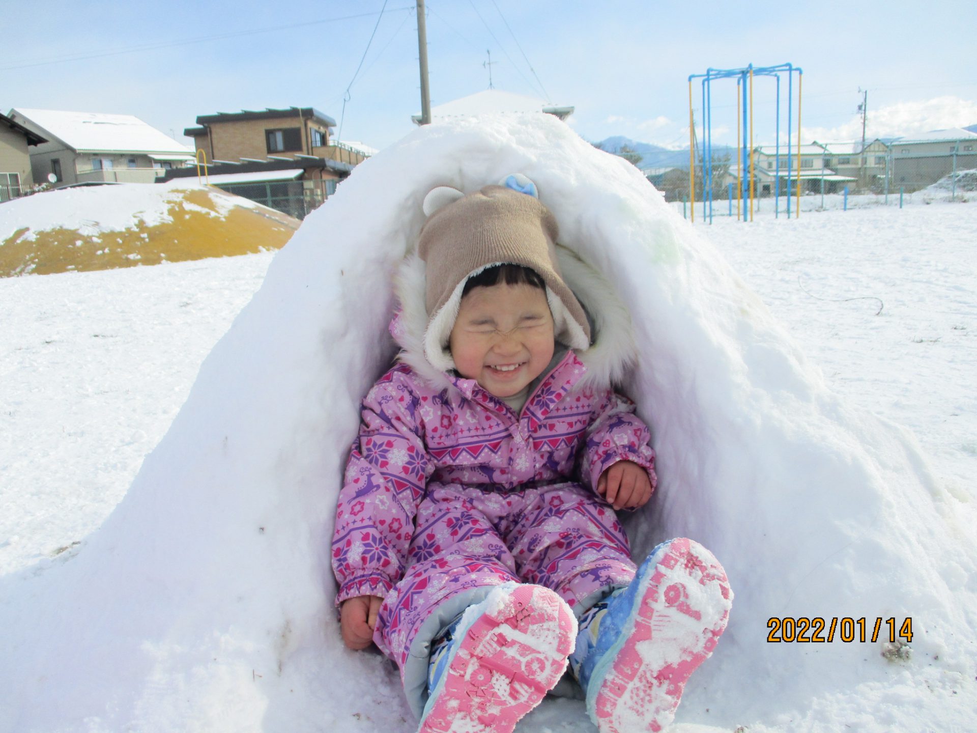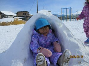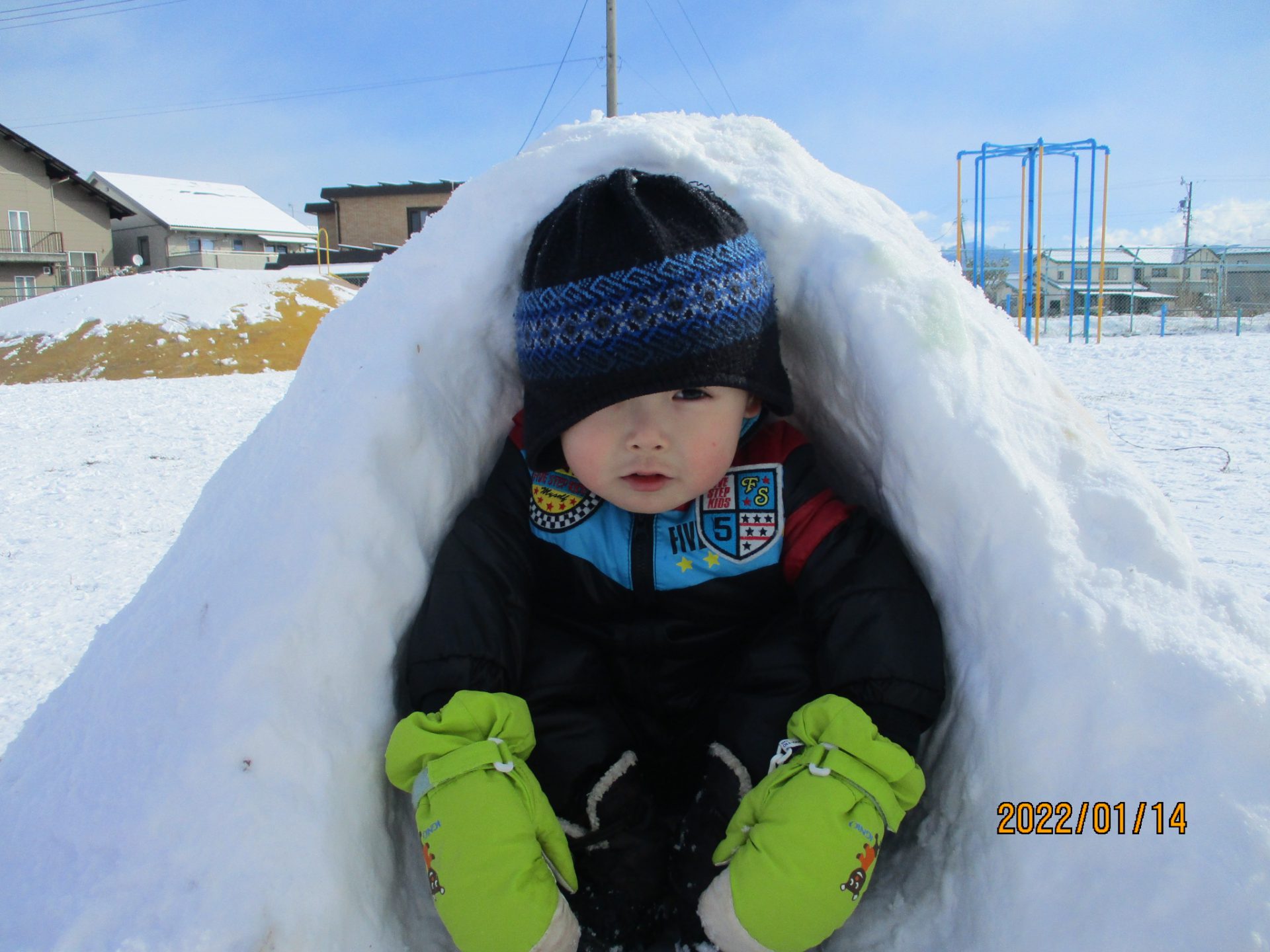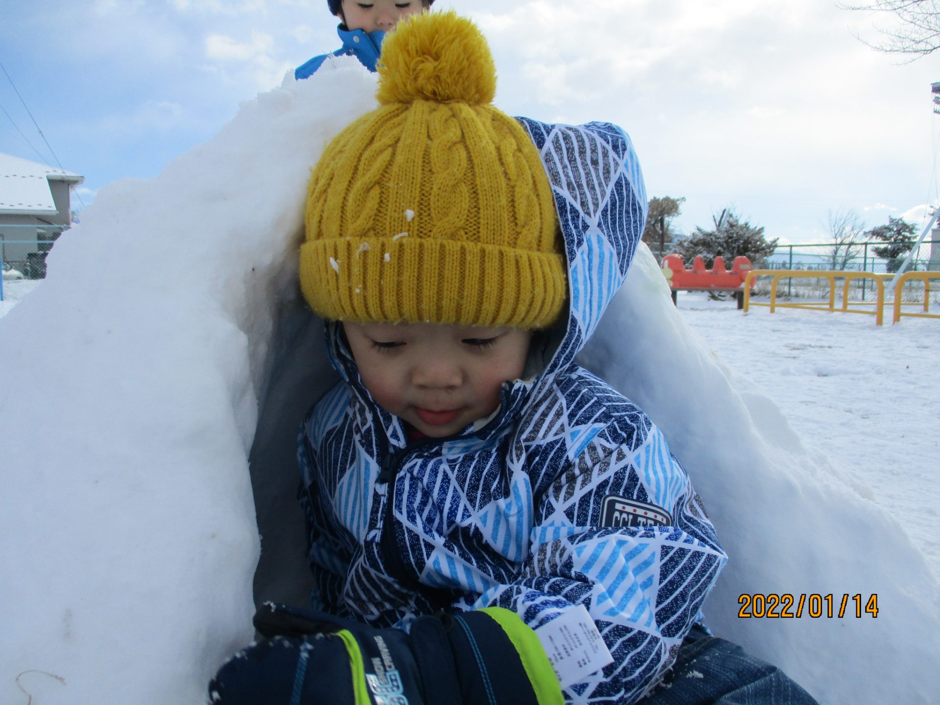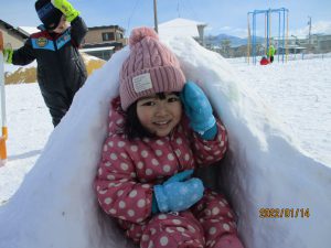 年長さんが作ったかまくら。ちょうど2歳さんサイズにぴったり!
