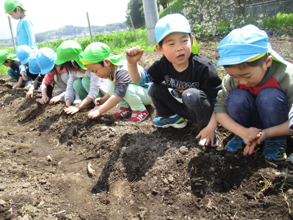 「おいしそう!」「食べたい!」「いっぱいジャガイモつくろうー!おー!」ということになり、ジャガイモを植えることにしました。