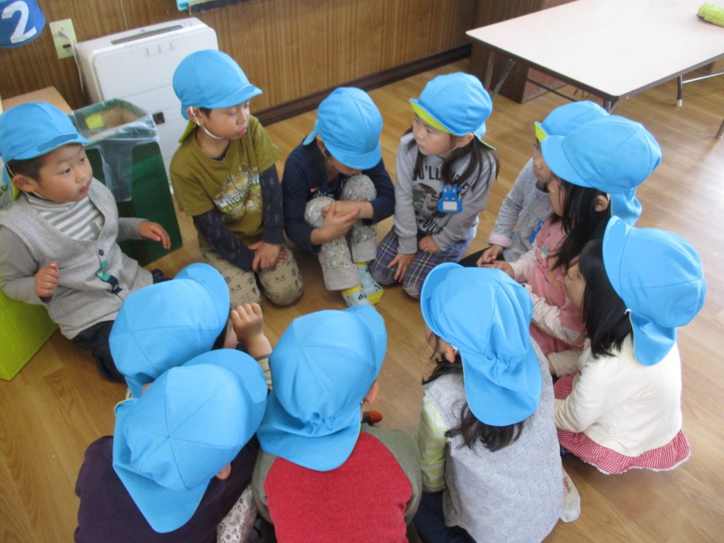 4、5歳児は畑の作物を決める話し合いもしました。ジャガイモを植えたことで去年のことを思い出すと「何か作ろうよ!」と声が上がりました。