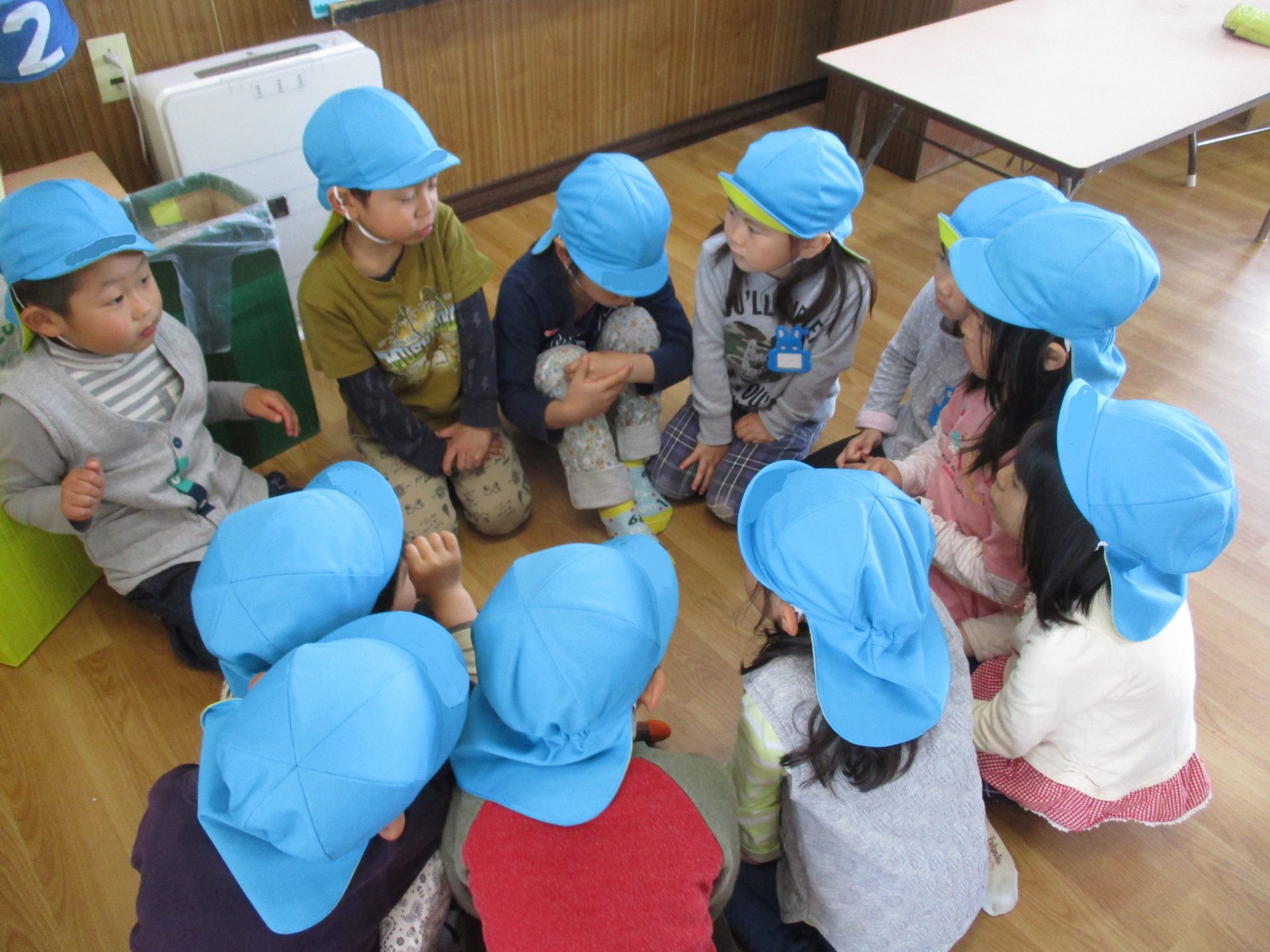 年長児は、目的に向かい集団で活動し考えて判断したり、解決したりする力を培っていきたいなと思っています。今回のような話し合いの場面を多く作り、友達の主張に耳を傾け共感したり、意見を言い合う経験を積み重ねていきたいと思います。