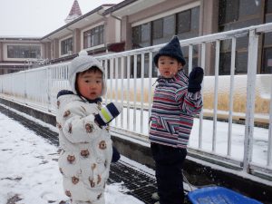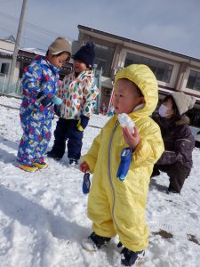 雪の中、夢中で色々な感触を発見し、楽しむ子どもたちでした。