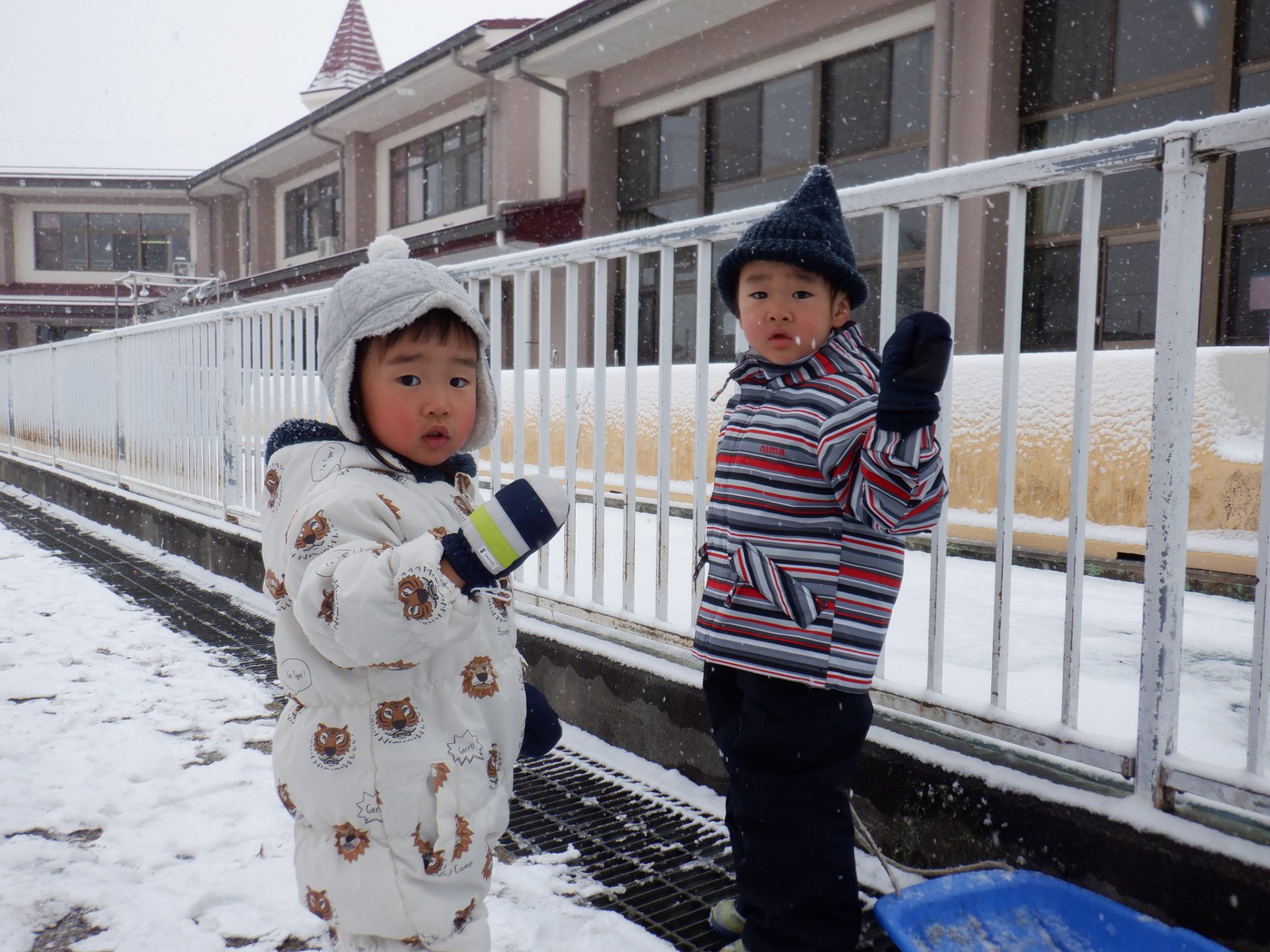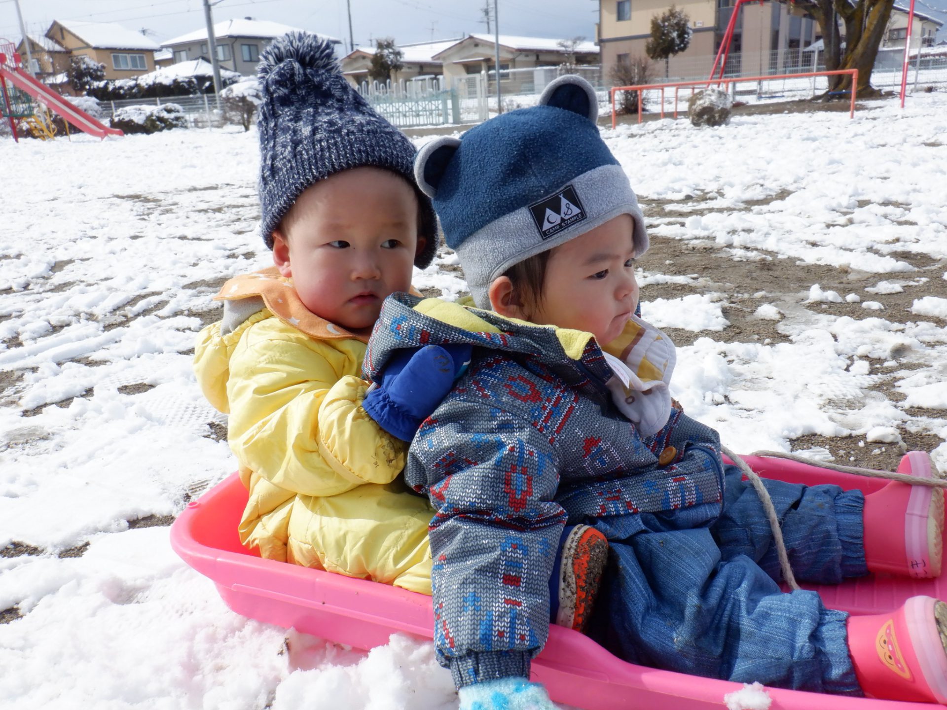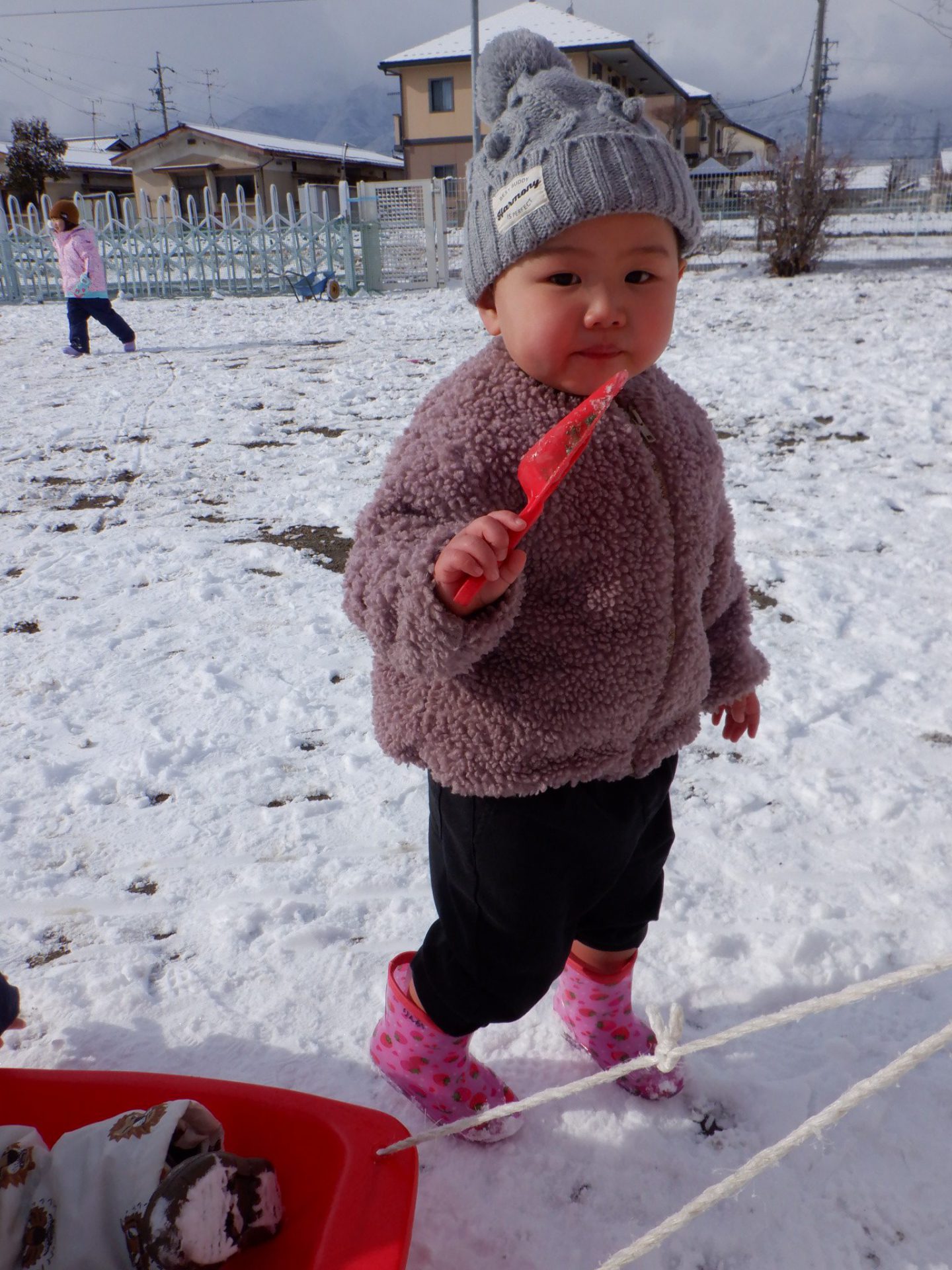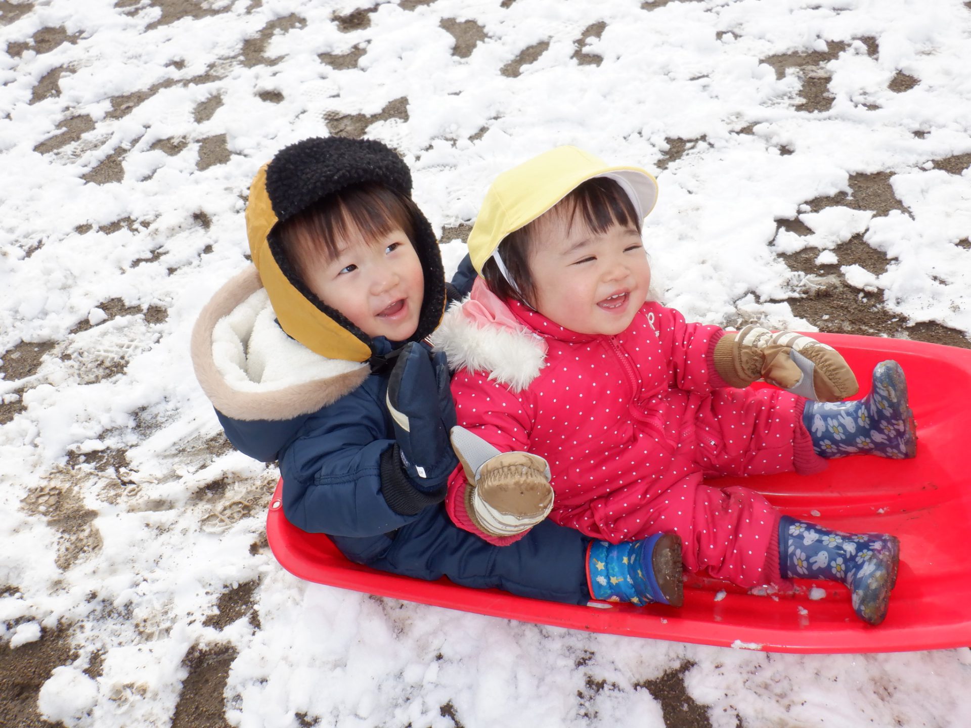 雪に触れてみたり、ソリに乗ったり引っ張ったり、好きな遊びを楽しむ子どもたちでした。