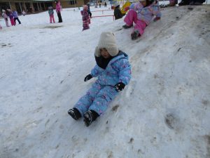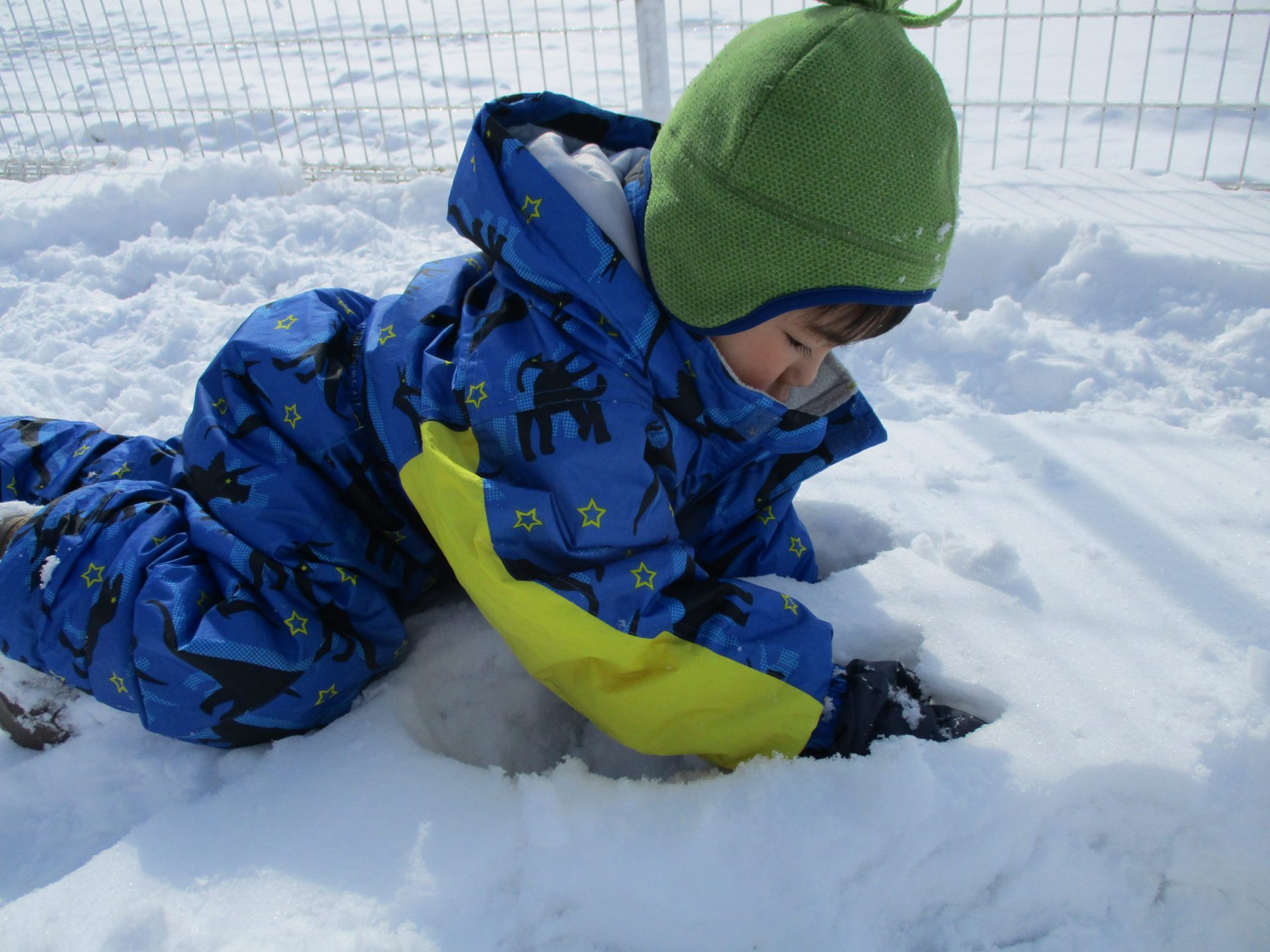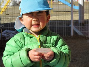 気づきを友だちと共感することで、雪あそびや氷に触れることを通して、一緒に感じたり楽しむ姿が見られたので、これからも色々経験していってほしいと思います。