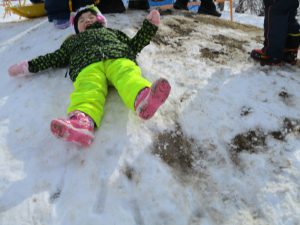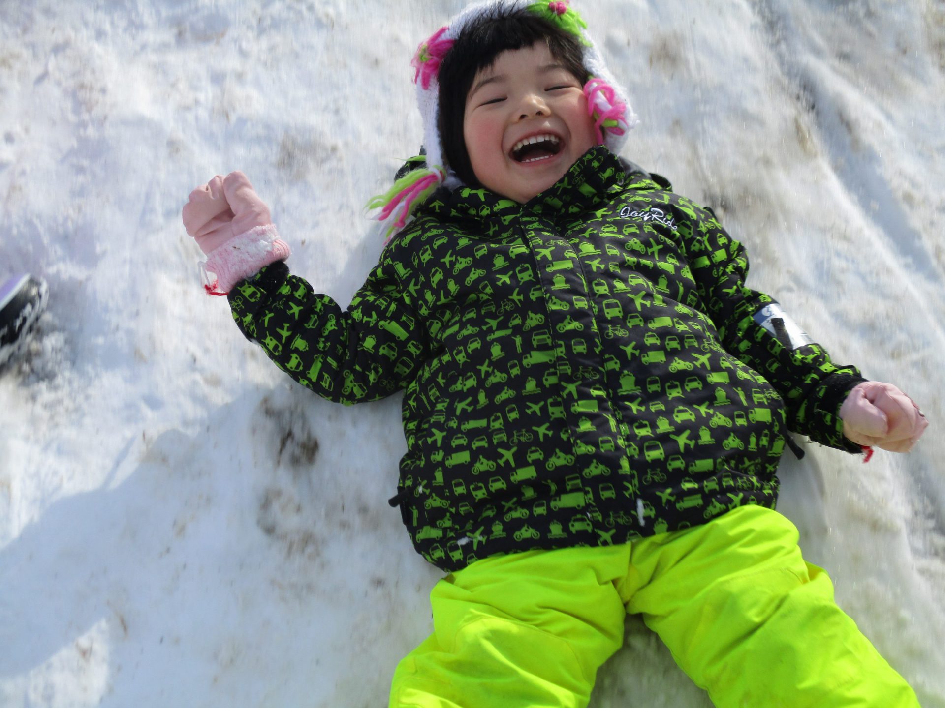 「うん」「わーすべる」「たのしいー」「あっ、ころんじゃった」