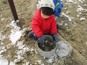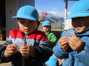 今年もたくさん雪が降り、雪あそびをしたり氷を使って遊んだりして冬の自然事象に触れることができました。