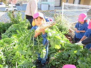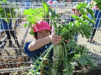 畑や給食のお手伝いをすることで食への興味・関心をもってほしい