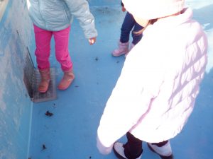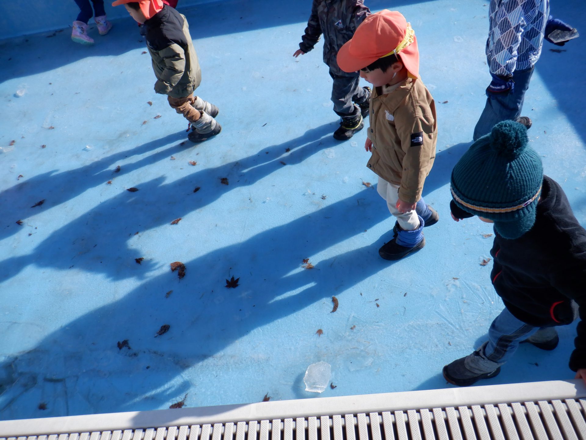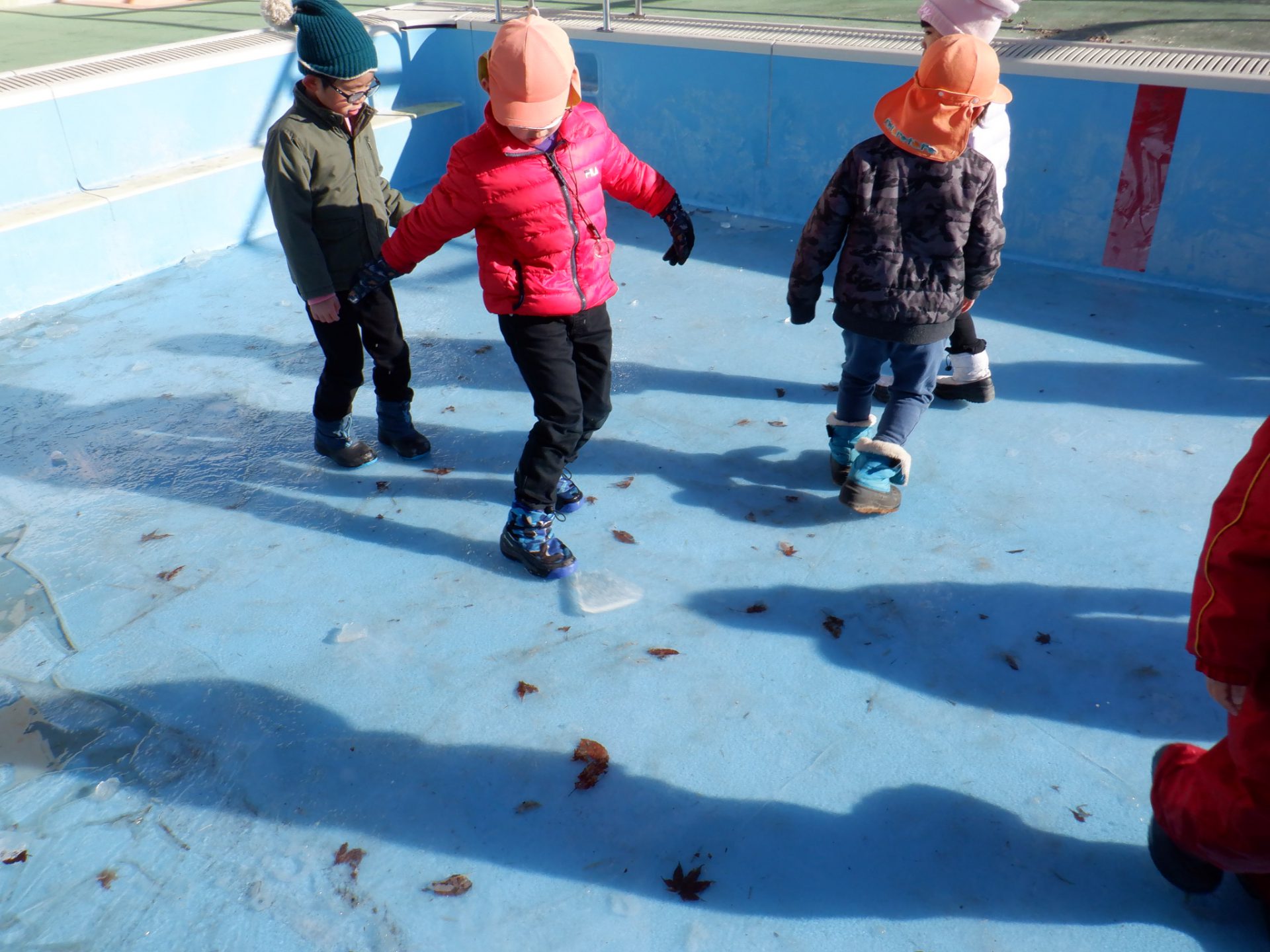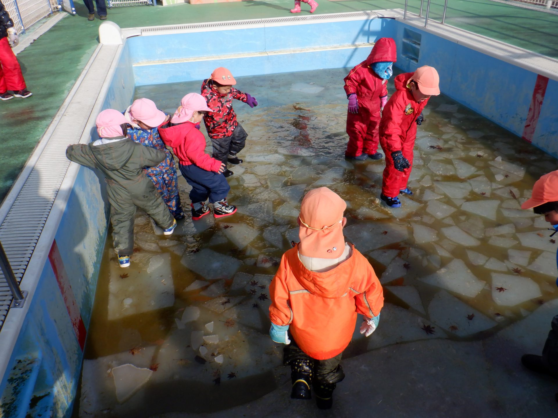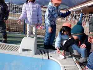 毎日、登園すると一番にプールの氷チェックに行く子どもたち。