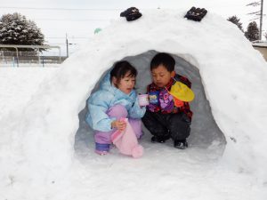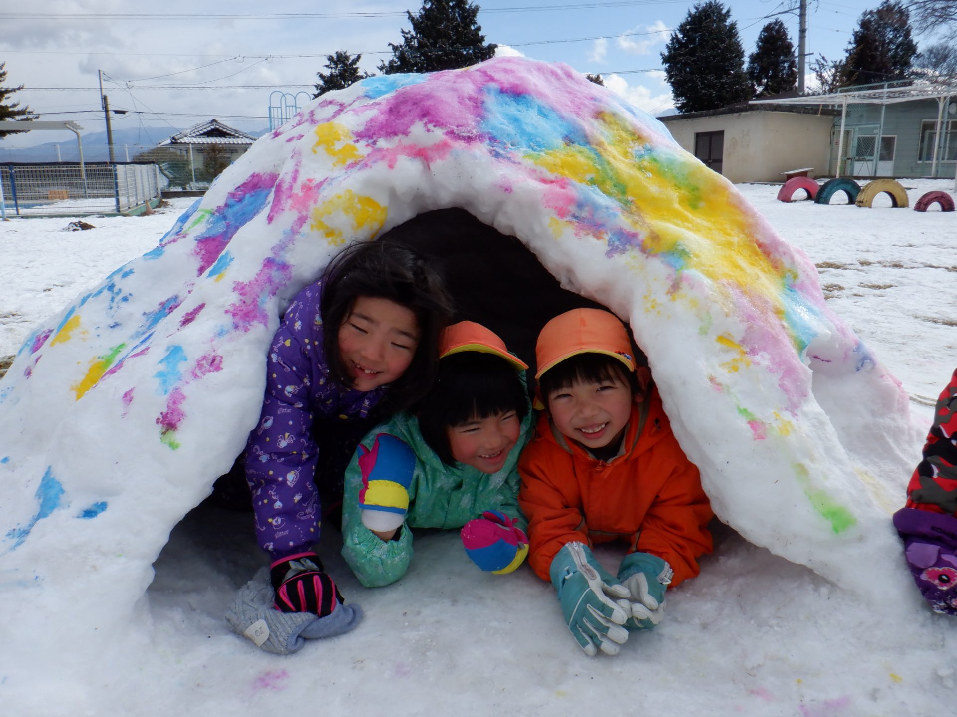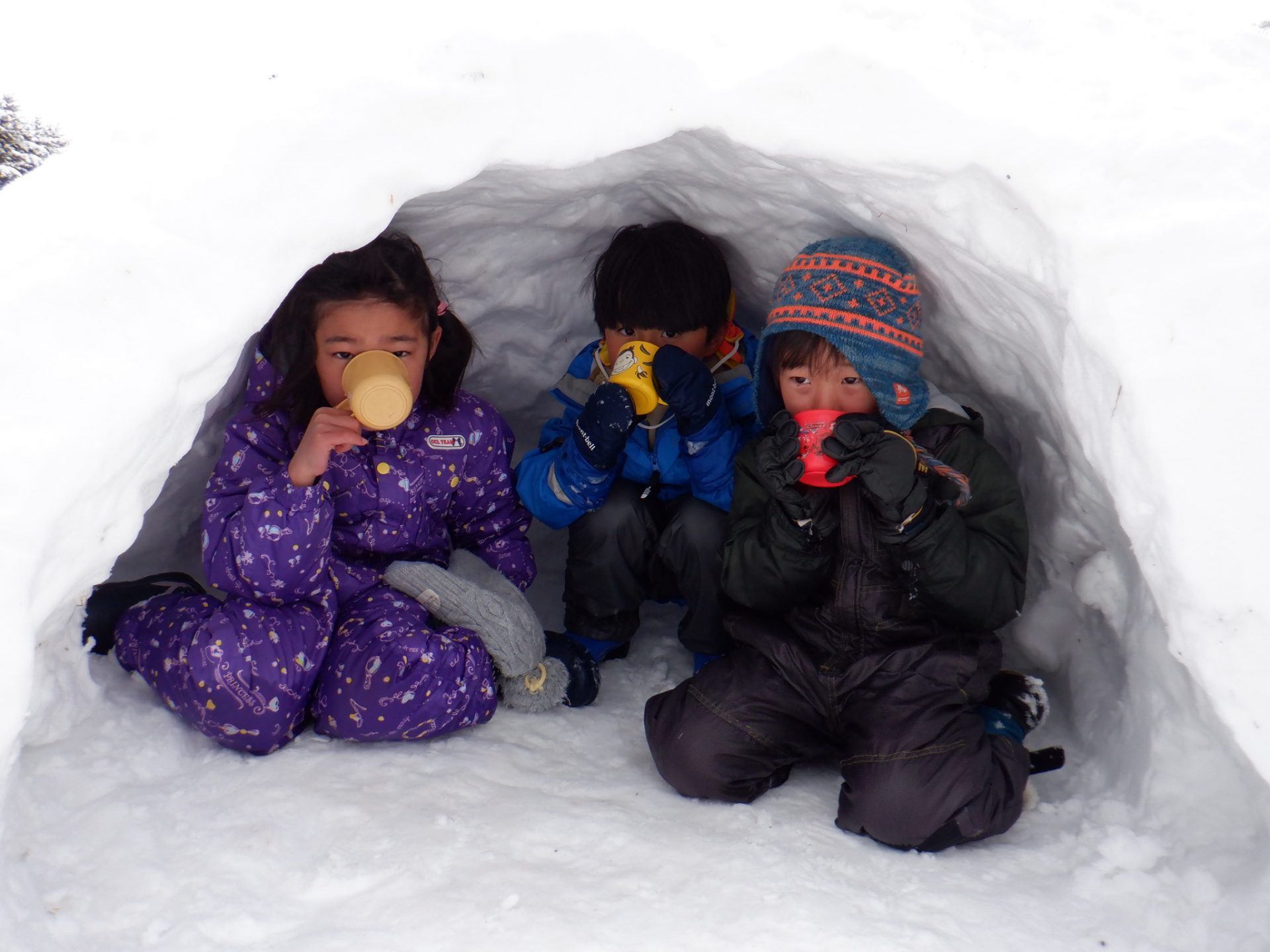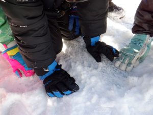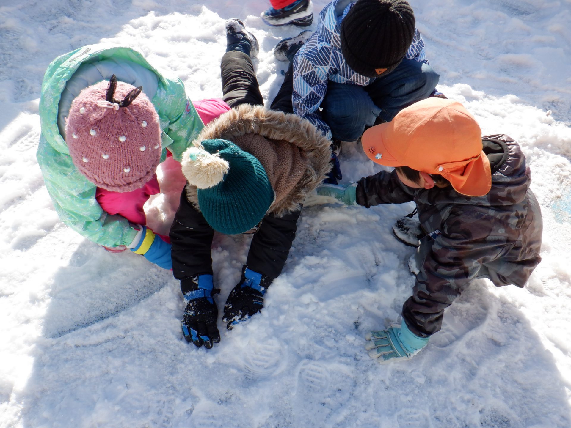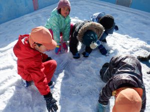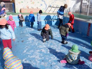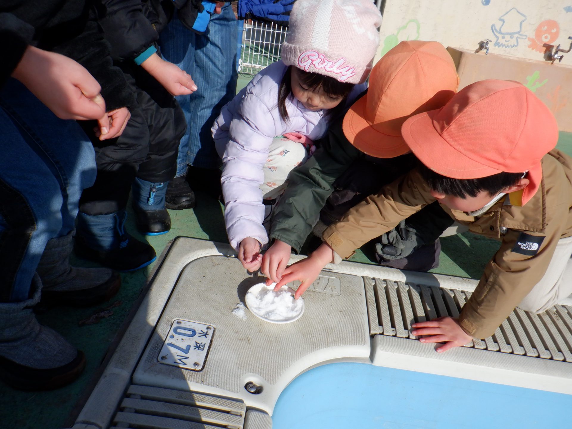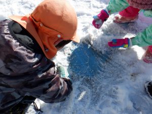 雪・氷に触れながら、あそびをどんどん発展させていく子どもたち。発見もいっぱいで「そんな言葉も知ってるの!?」という発言にビックリする姿ばかりでした。