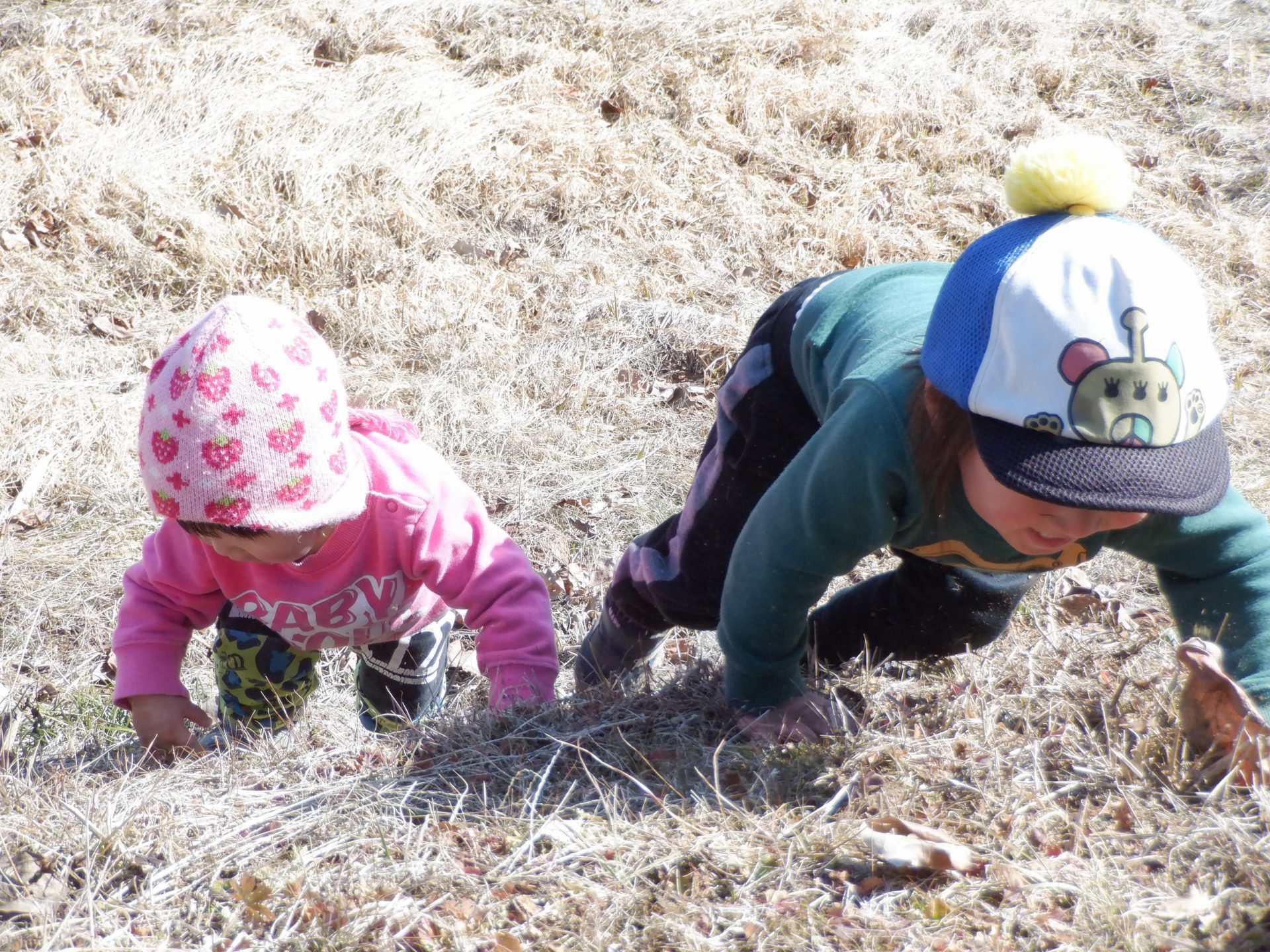 おや?しゃがみ込んで何か探してる・・・。保育士が「なにしてるのー?」と声をかけても返事をしてくれません!(笑)それほど夢中になっていました。