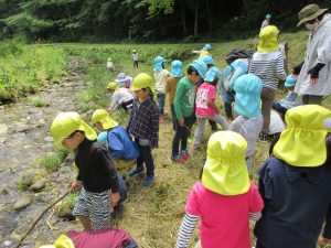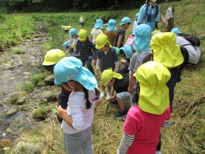 楽しんできた子どもたち。夏の遠足では保育園の近くにある川に
