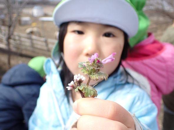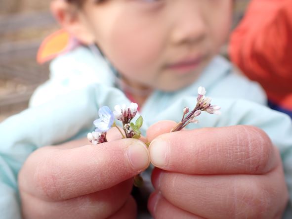 子どもたちの小さい手に、小さい花がとても可愛らしいです。