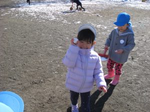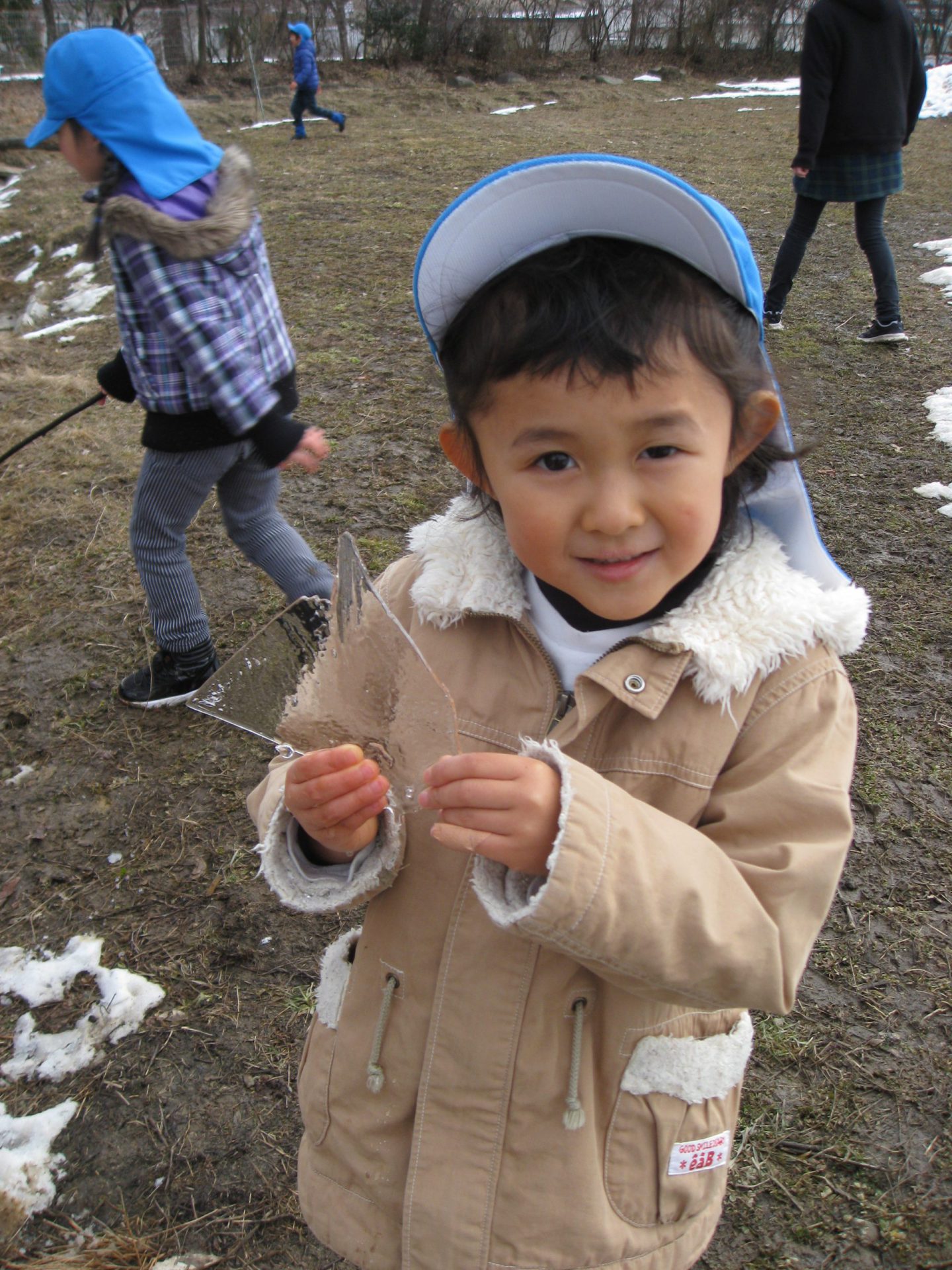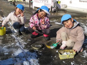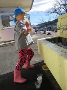 寒くなってからは年長さんの真似をして、カップに水を入れて氷づくりをしたり、
