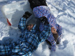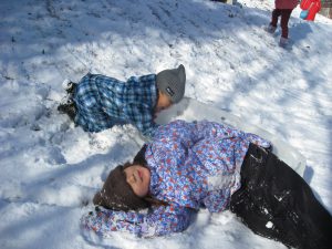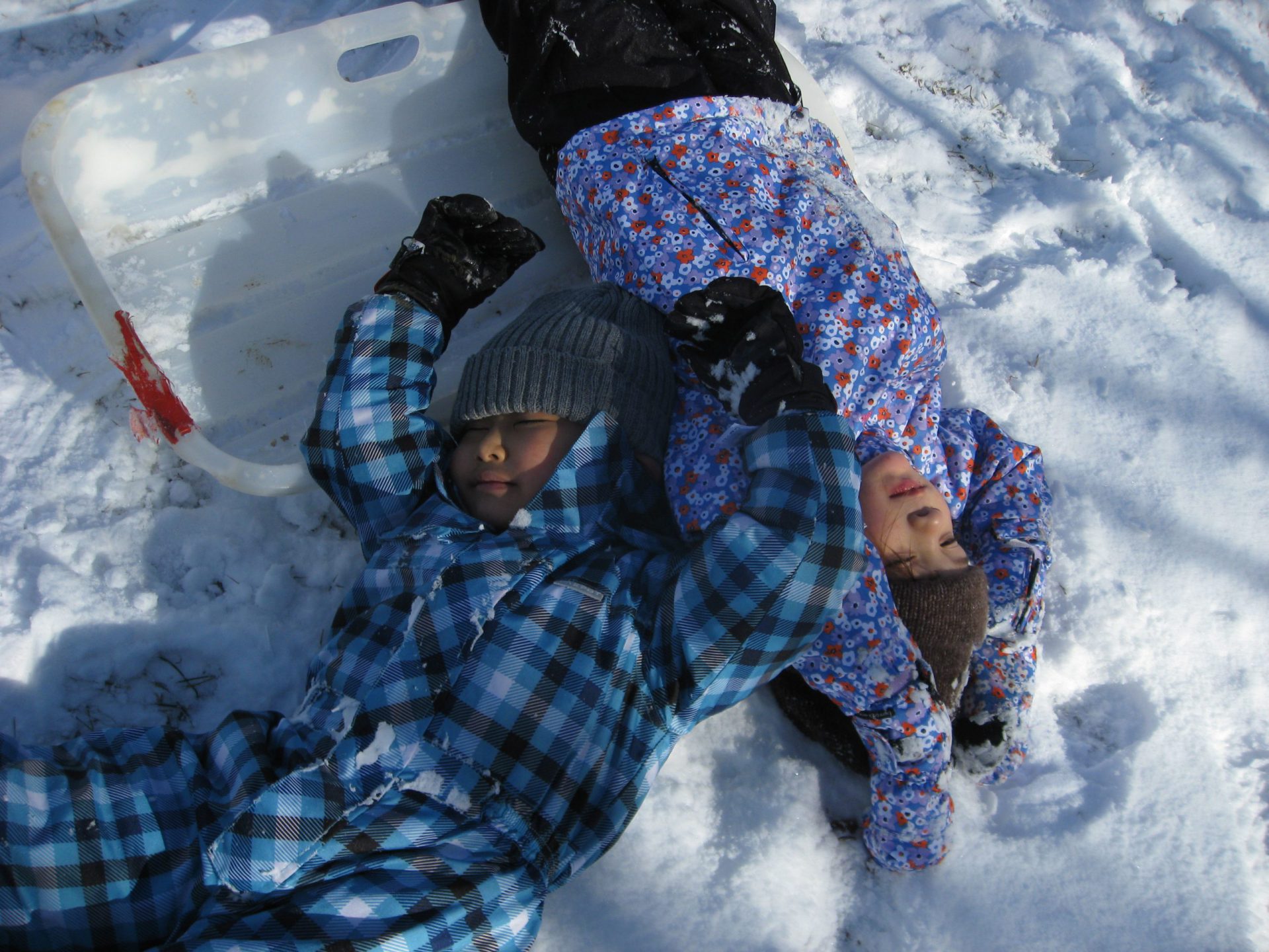 「雪の上に寝ると気持ちいいね、少し冷たいけど」「楽しい♪」