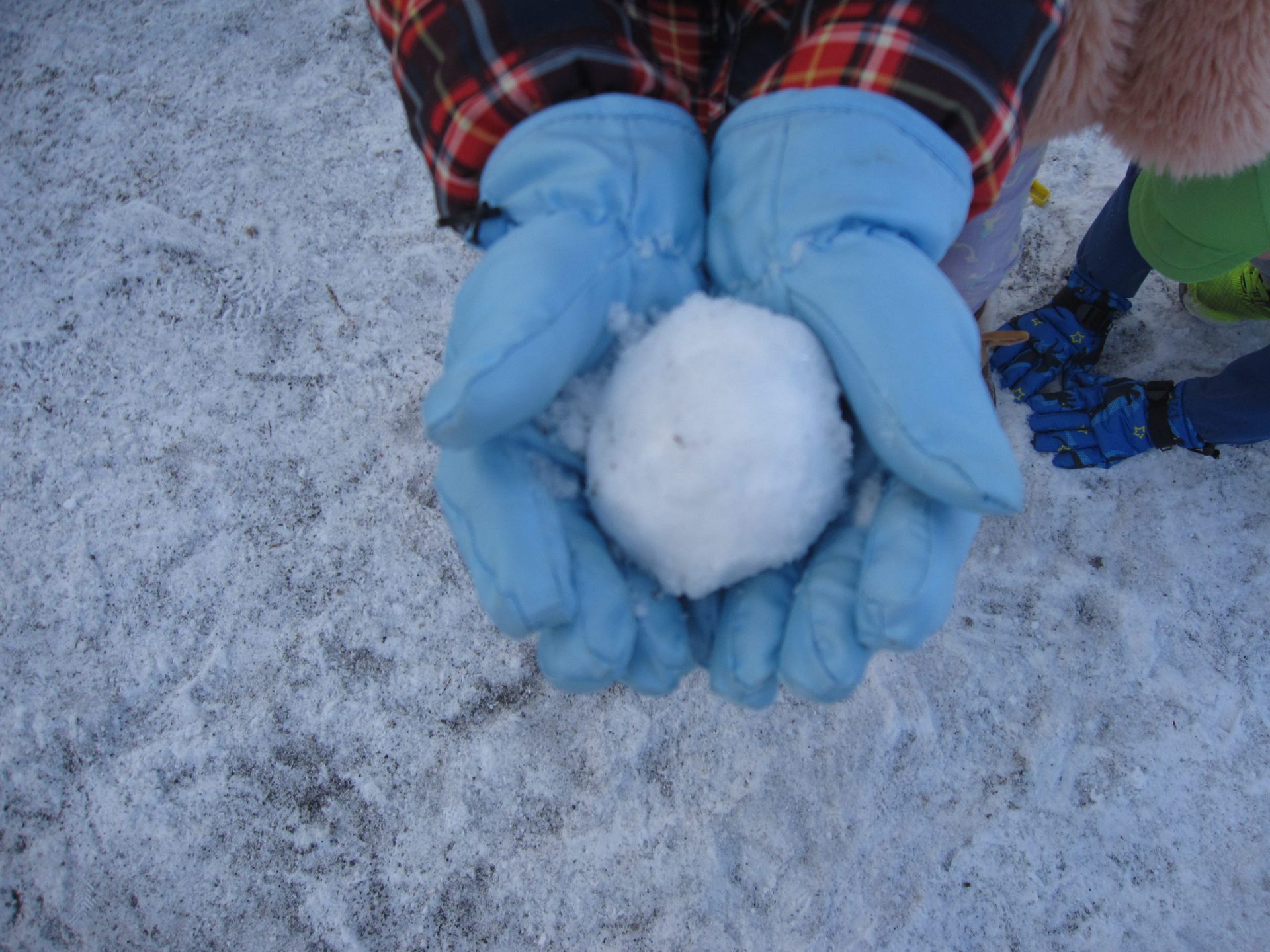 冬は雪で雪玉づくりに挑戦しました!