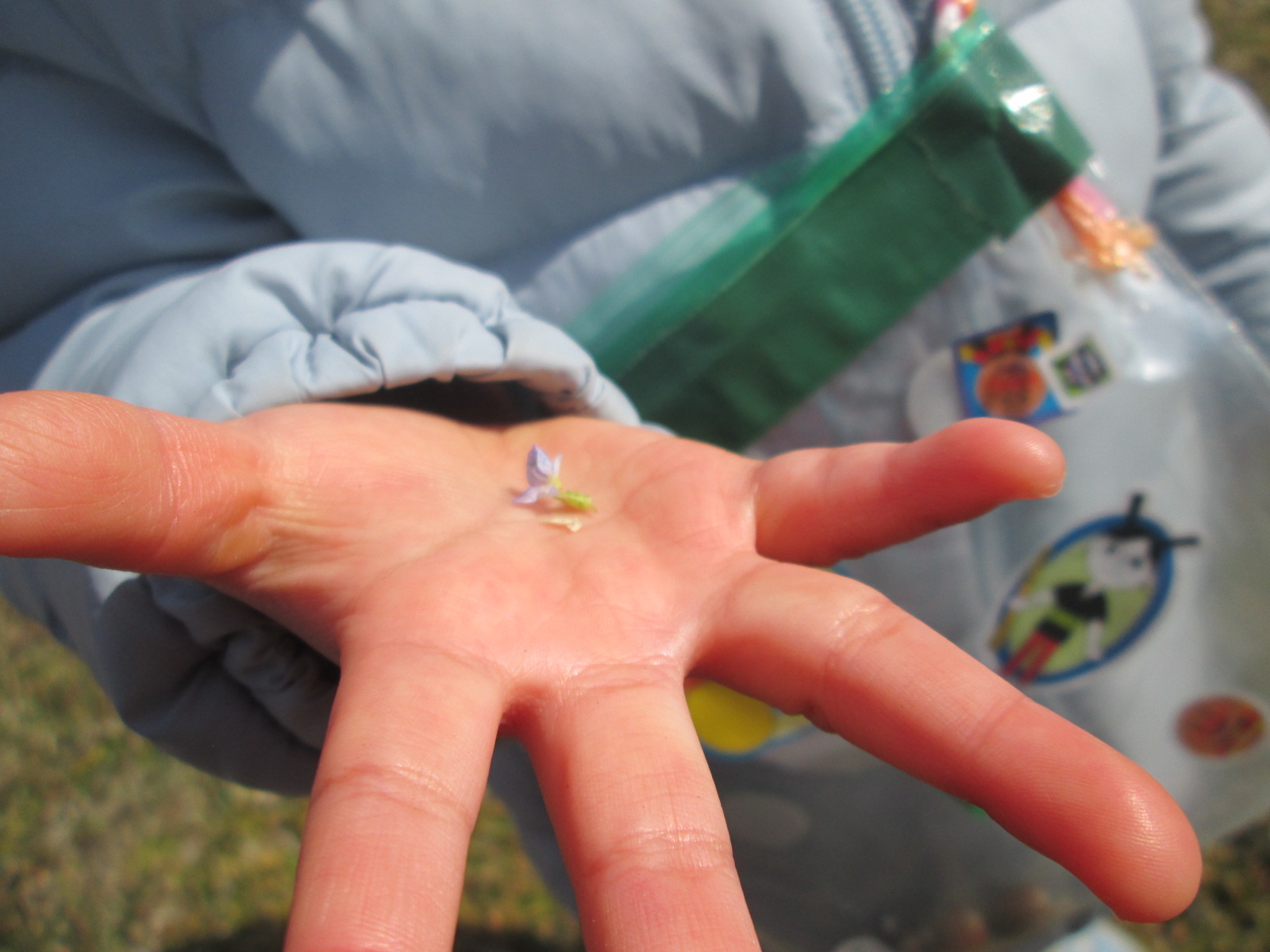 見に来た子がお花を摘んで「小さいのあった」と一言。