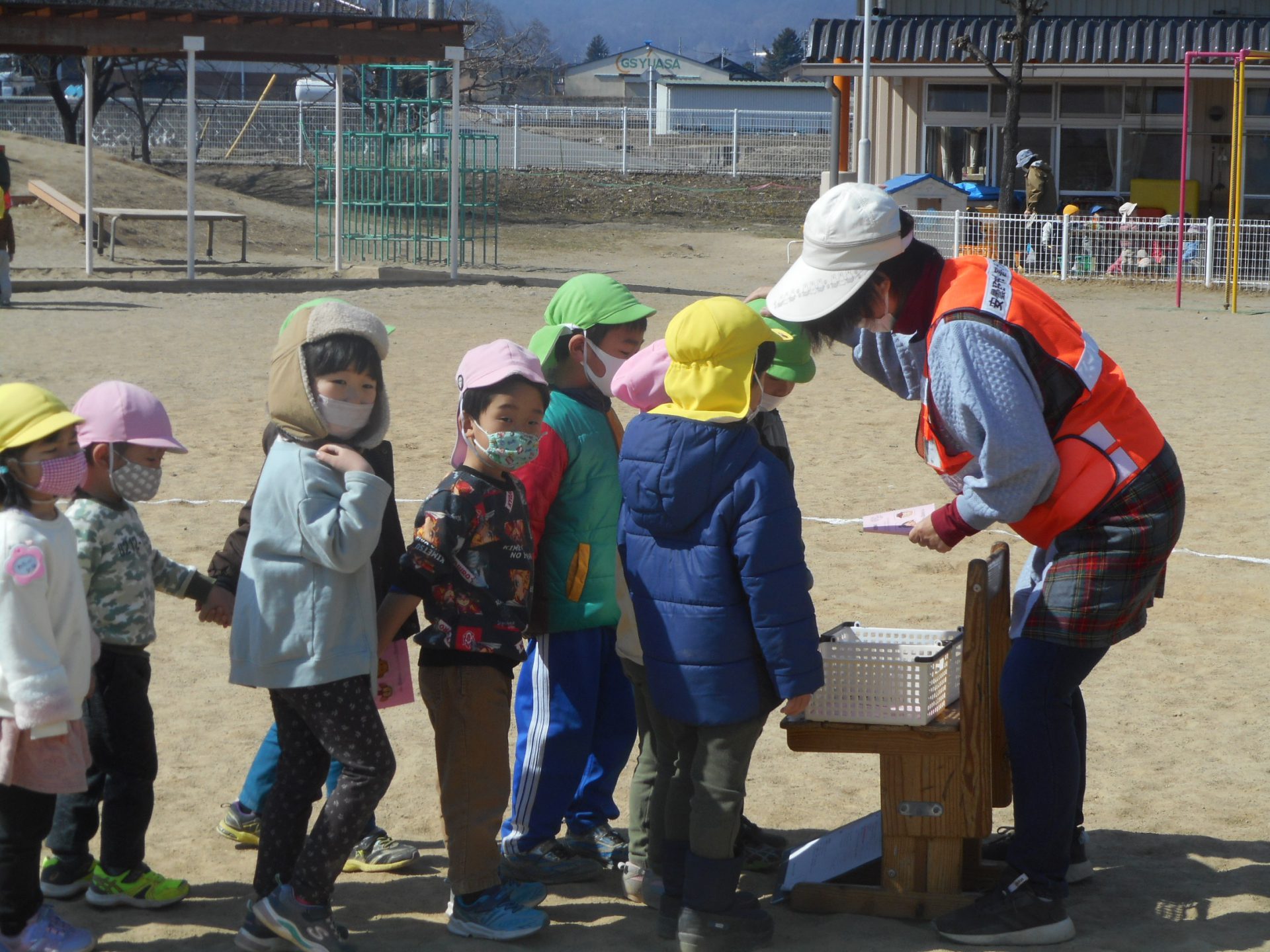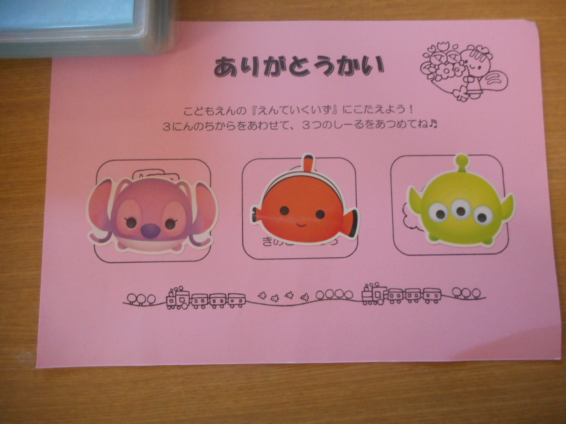 クイズに正解するとシールを貼ってもらい、最後は園長先生のところへ行き全問正解!とカードを見せに行き、みんなが正解するまで”ちょっとだけ体操”や”あずみ~の”など思い出の体操をして体を動かして楽しく待つことができました。