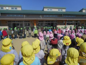 年少・年中から「ありがとう」の気持ちを伝えると、年長さんからお礼の歌をプレゼントされ楽しい会になりました。