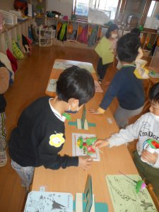 また別の日、卒園式の様子を見せてもらい、鉛筆立てのプレゼントを渡し、年長さんから”年長さんのお仕事”の引継ぎをしました。
