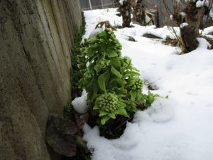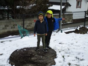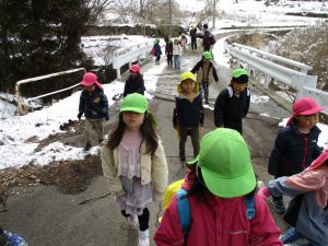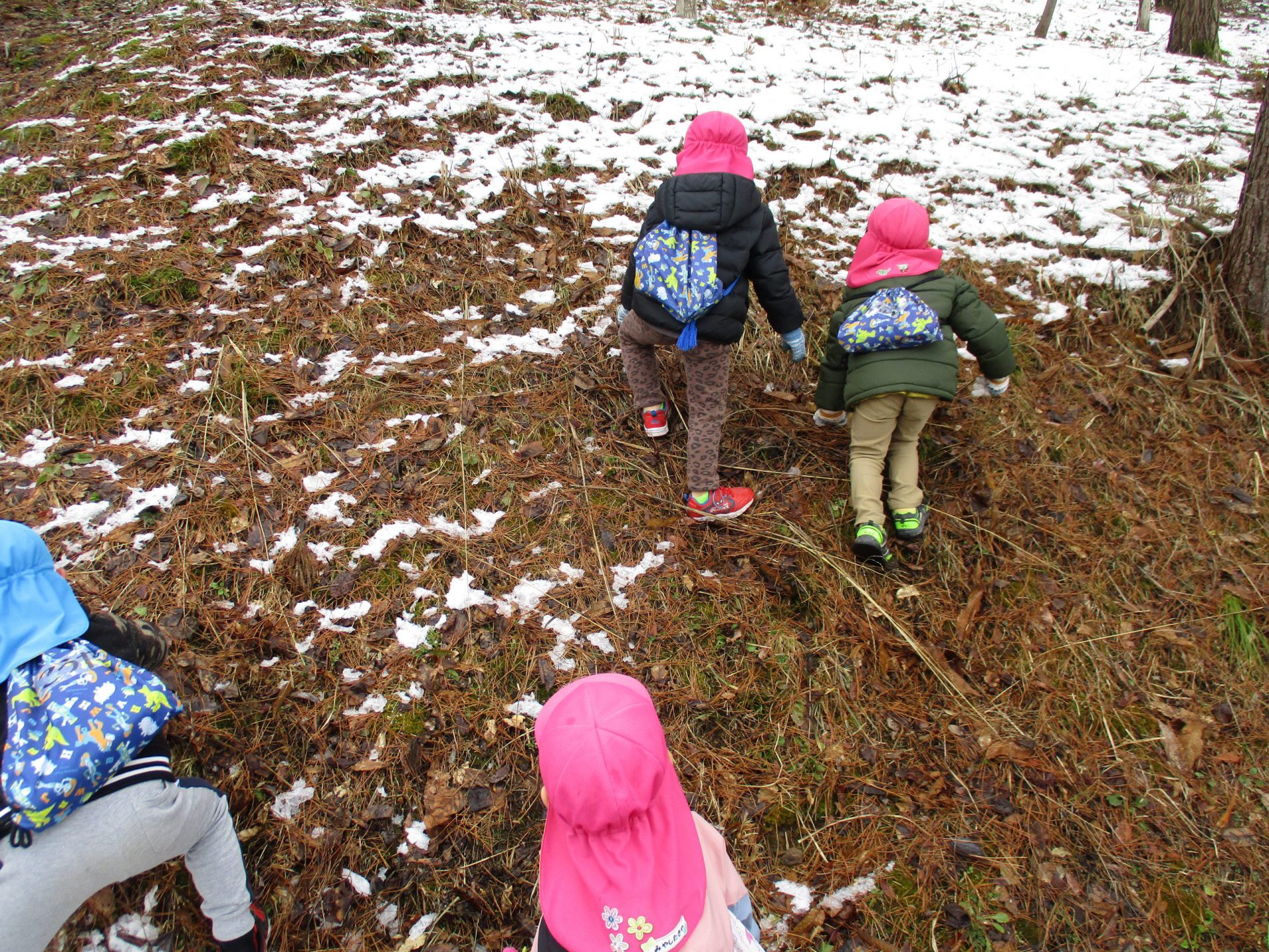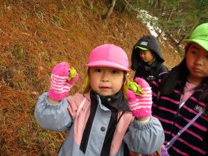 ふきのとうを見つけたり、つくしを発見したり、遠くに望む戸隠山を眺めたり...