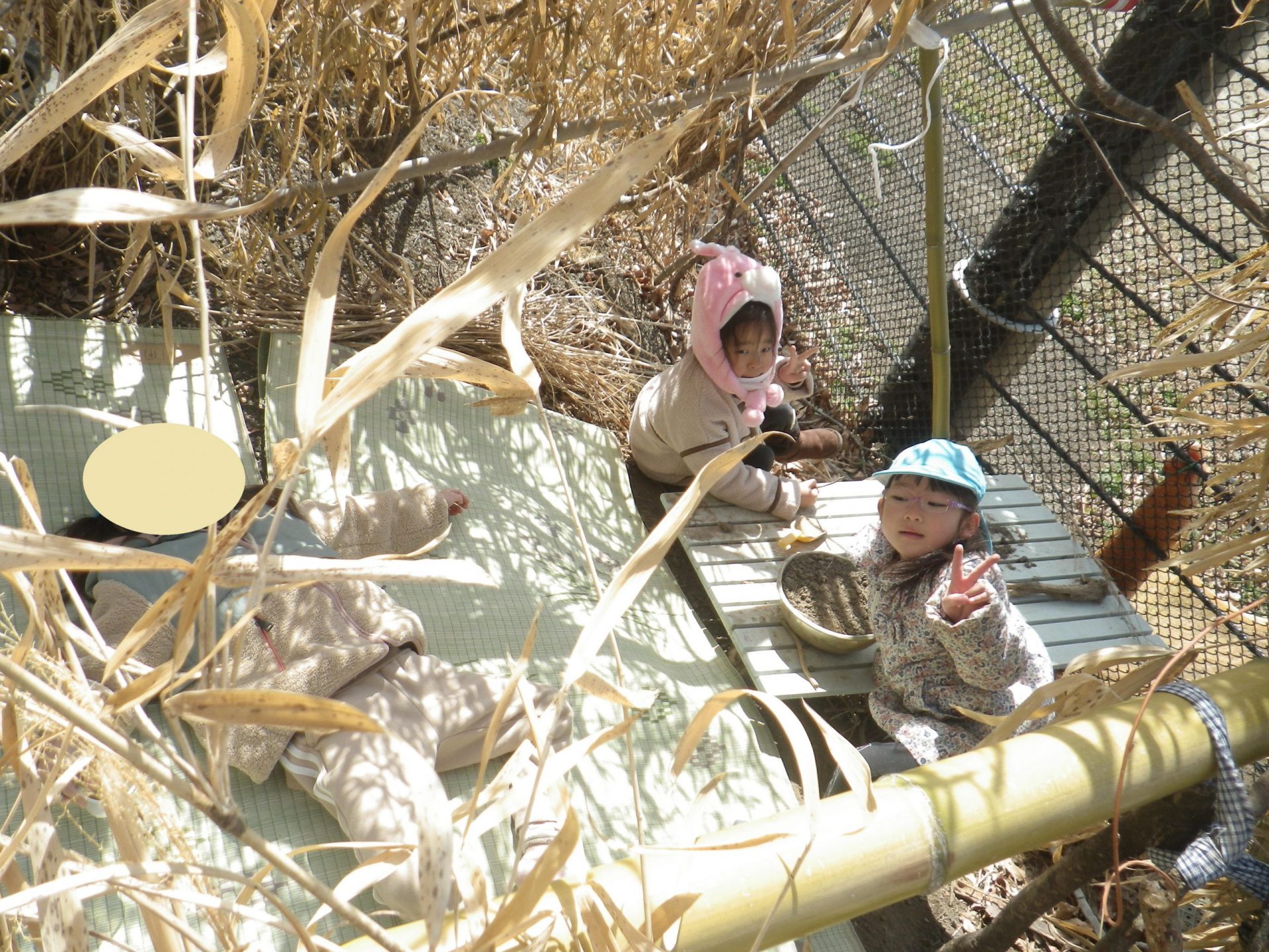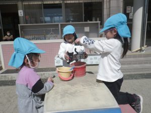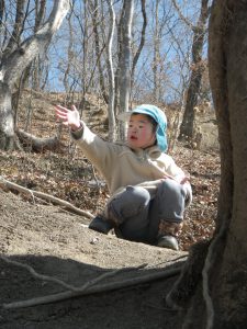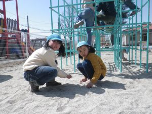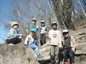 園庭や裏山など戸外遊びが大好きなきりん組さん、今日も早速園庭に出かけて行きます。
