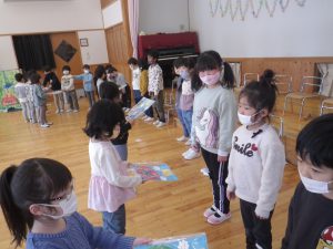 小さい組さんからも心のこもった歌や手作りのプレゼントをもらいました。
