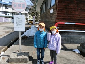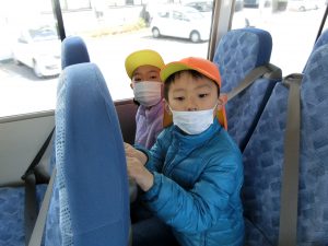 大望峠バスの旅に再び出かけた年長さん。2回目ということもあり、バス停でもリラックスした表情が見られました。