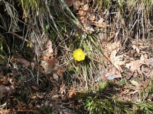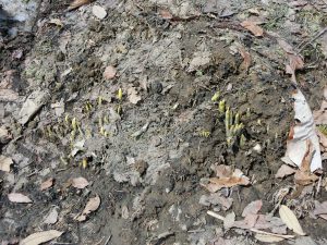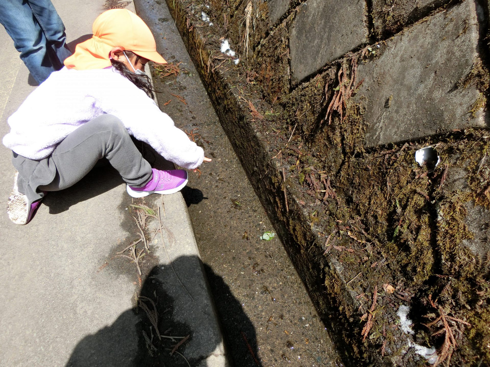 「福寿草だ~」「わぁ、ちっちゃい毛虫!」「これ、なんの芽?」