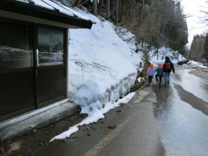 峠からの眺めは春の時とはまた違い、凛とした美しさがありました。子どもたちもその景色を眺めて、雪の多さとその美しさを感じていました。異なる表情の鬼無里の里を見られて良かったです。