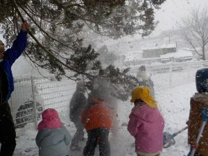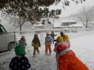 「きゃ~!落ちて来た~‼」「大雪だぁ」「つめた~い!」