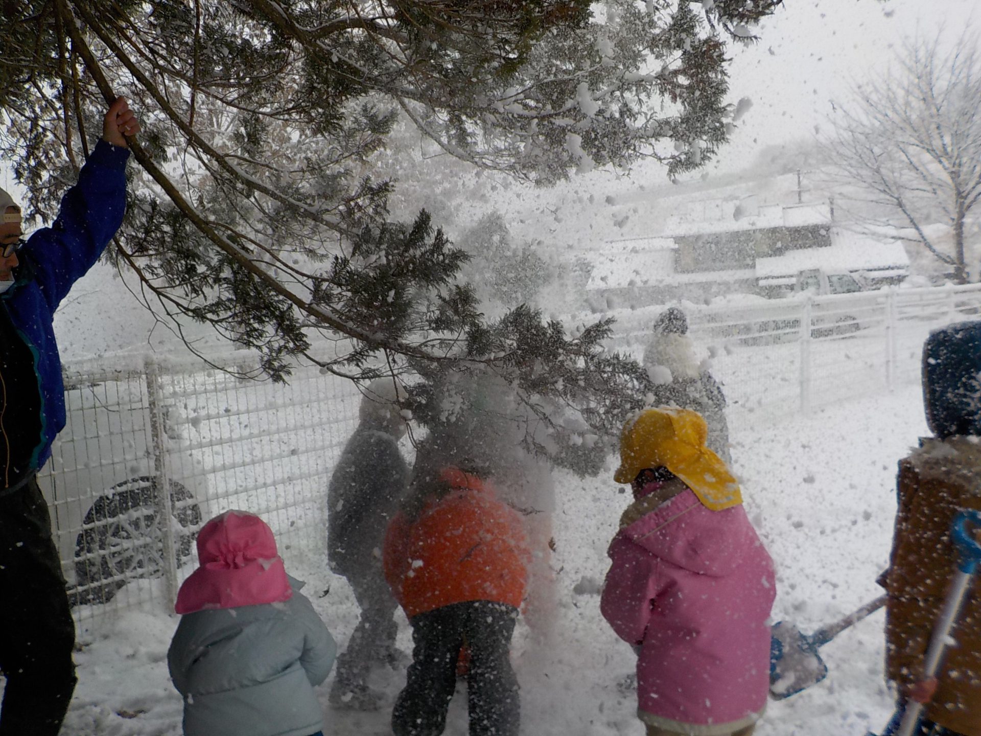 「枝をゆすると雪がいっぱい降ってくるんだよねぇ~」