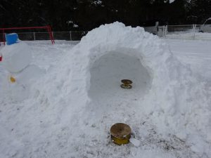 完成です!地域の方も手伝ってくれ、3~4人入れる大きなかまくらができました。