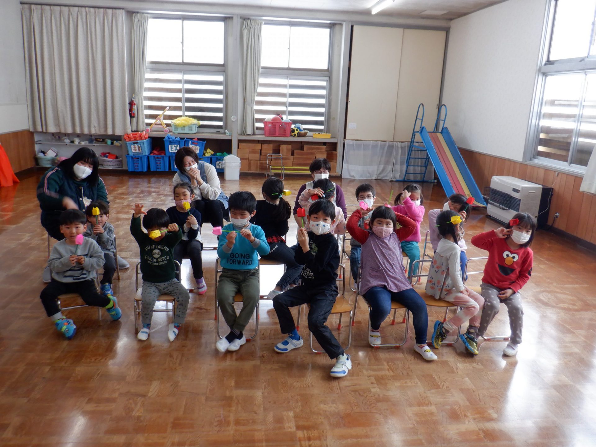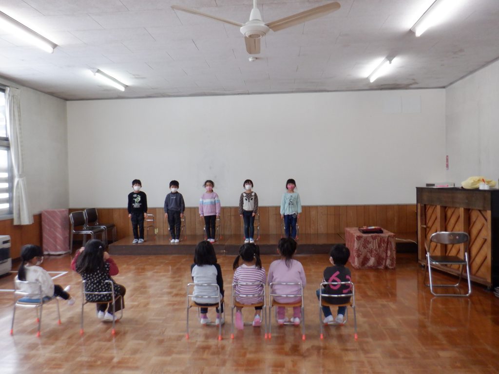 楽しかった毎日を思い出しながら、年少・年中さんから歌のプレゼント。