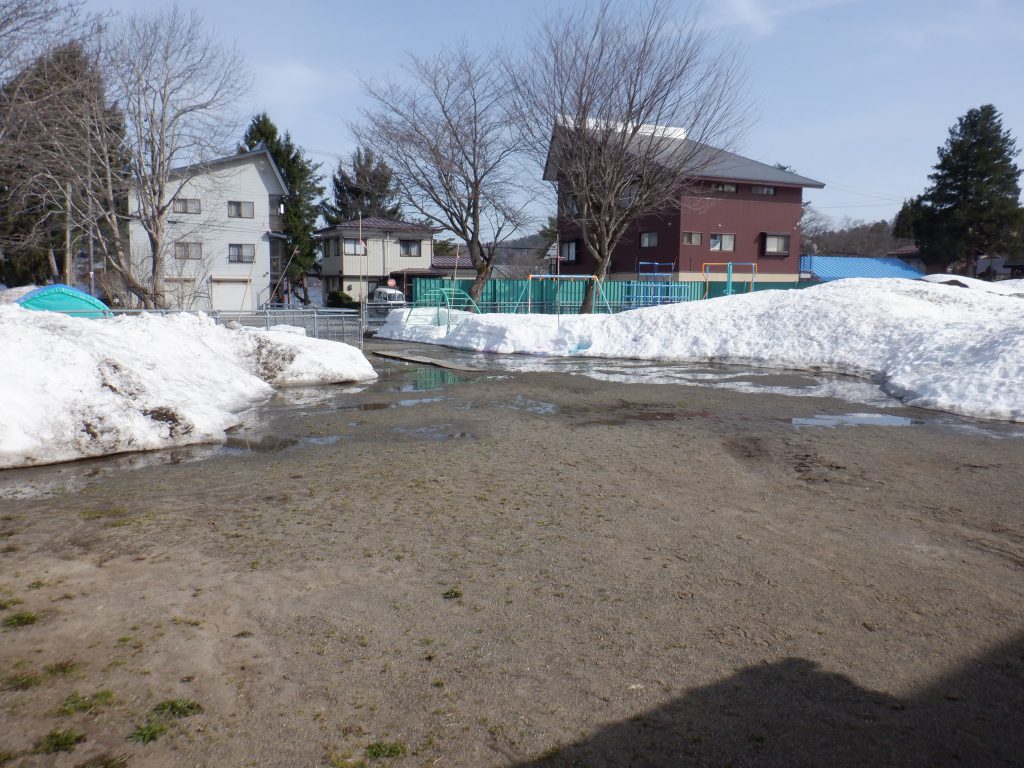 寒かった信濃町にもぽかぽかと暖かな陽射しが降り注ぎ、園庭に積もっていた雪もすっかり融け、地面が顔を出してきました。