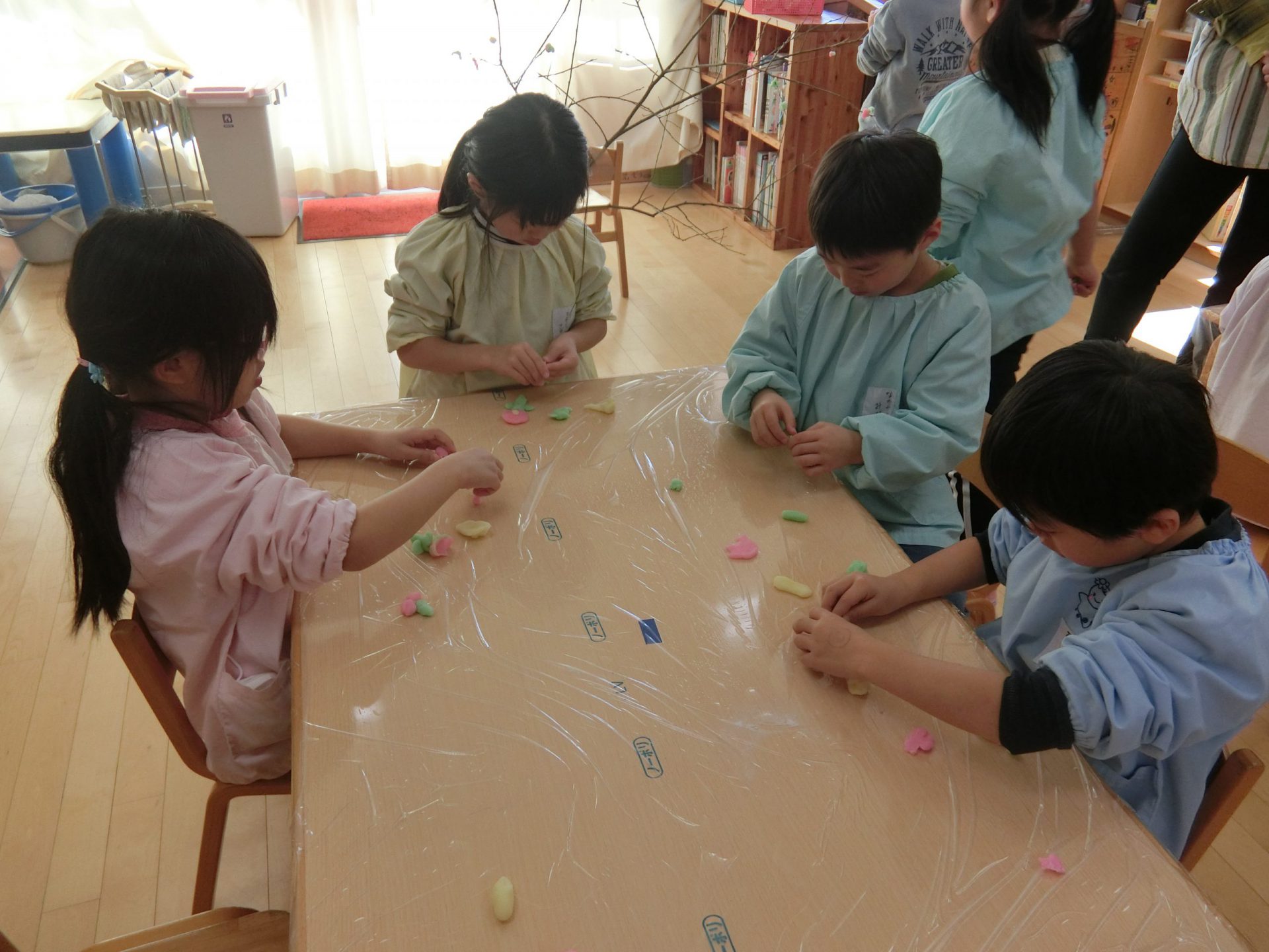 部屋に戻ると、まゆ玉作りが始まりました。