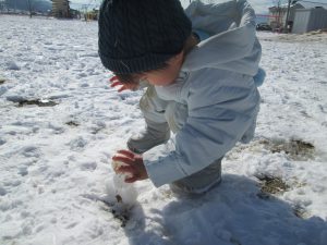 雪と出会う未満児さん。