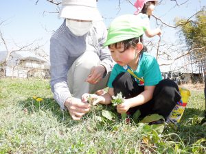 ・春の自然(草花や生き物等)を身近に感じて遊ぶことを楽しんでほしい。