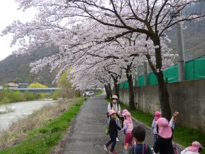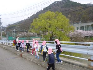 長野県庁やまほいく担当の藤田さんも一緒に散歩に行っていただき、子ども達はりきっています。