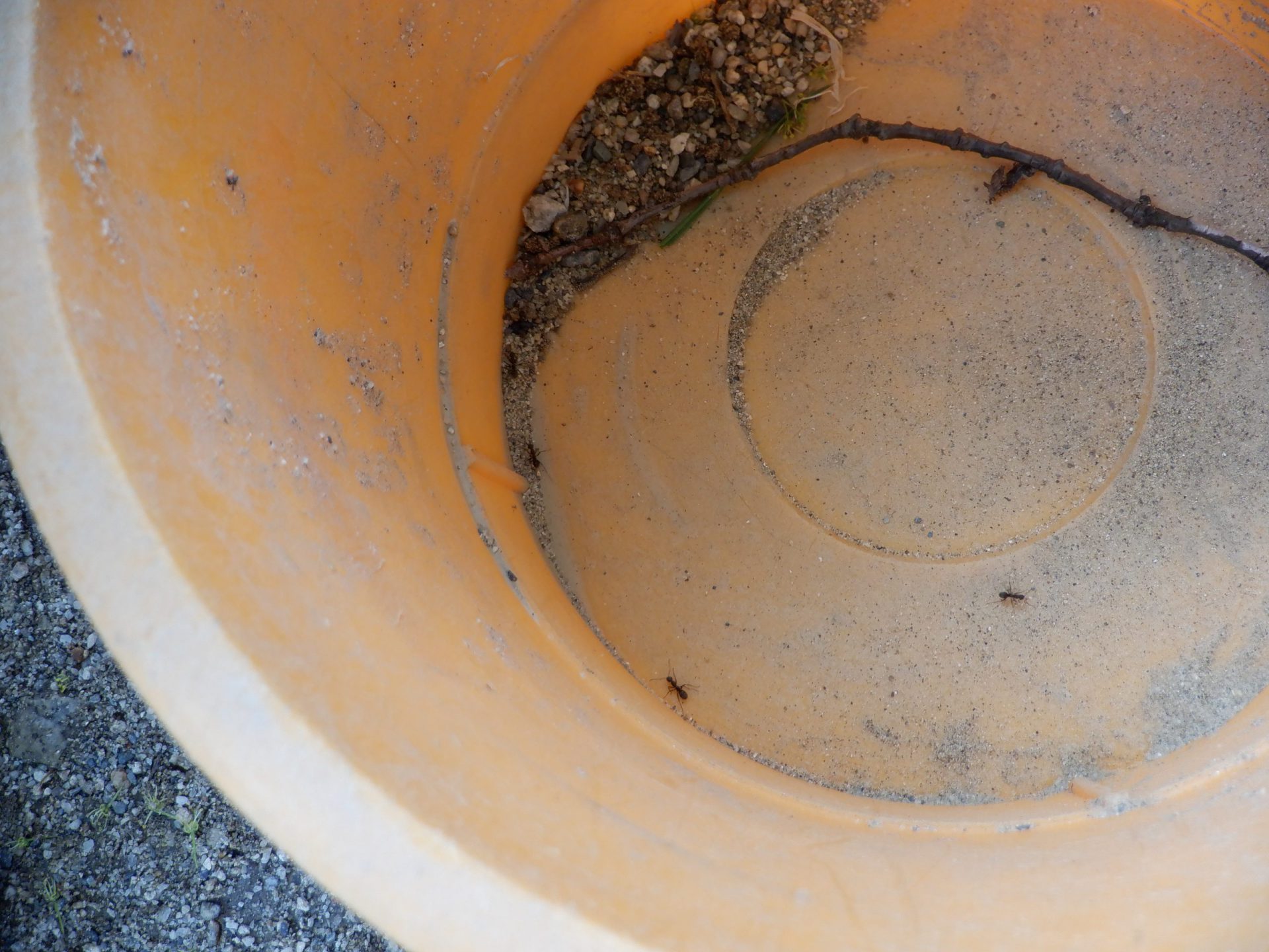 ・捕まえたアリがバケツの中をのぼってくるよ!