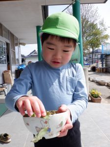 ・保育園の中の‟自然”に気づいたり、見つけたりして親しんでほしい。