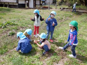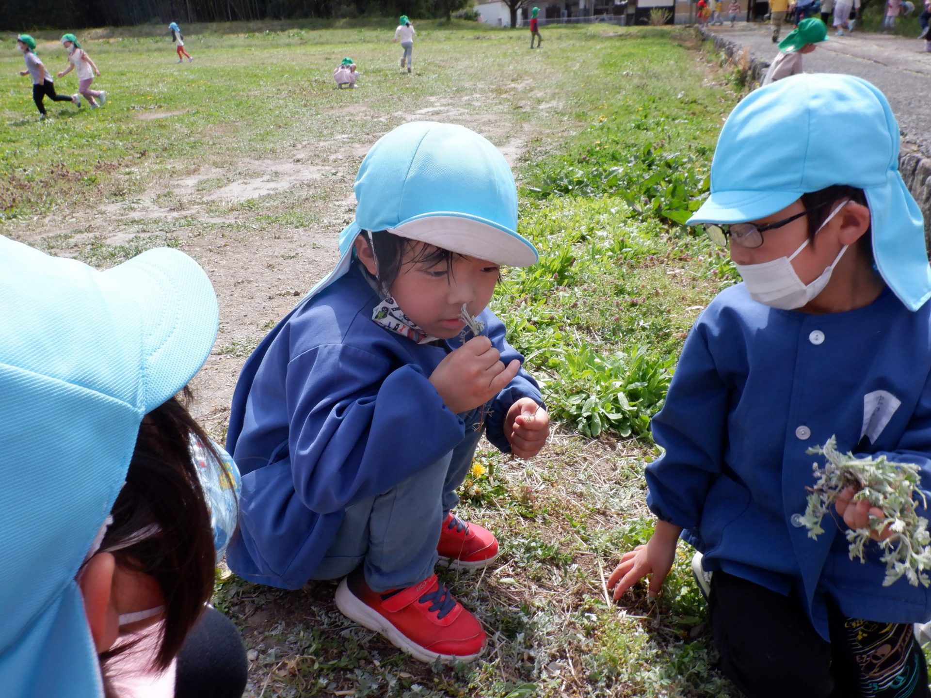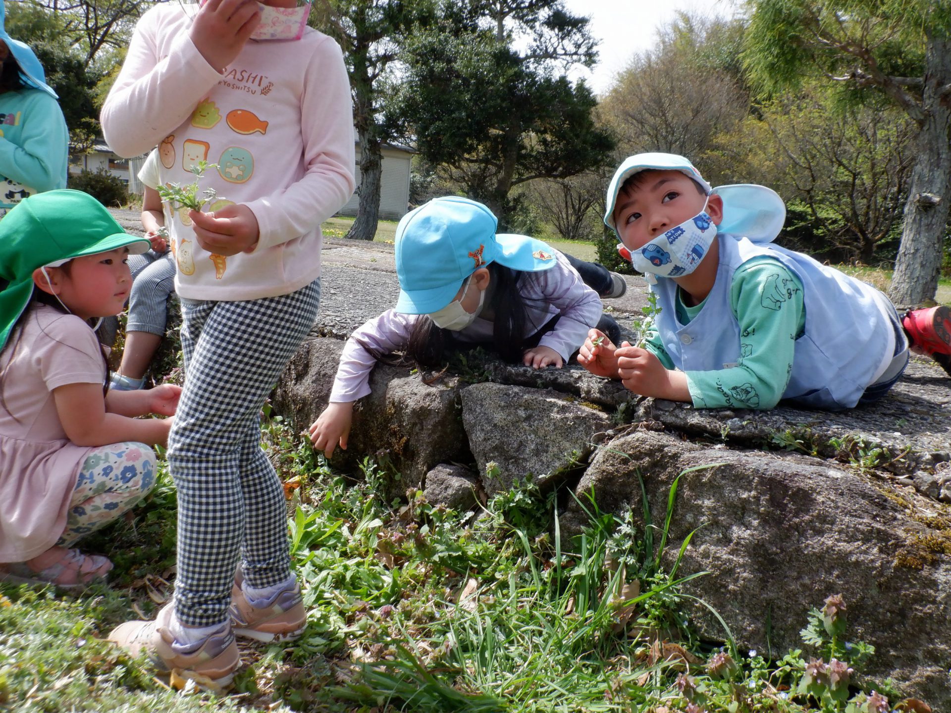 暖かさを感じながらよもぎ以外にも自然と春を感じる子どもたちでした!
