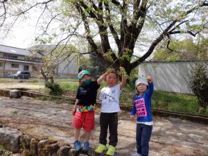 「これ何かな~?」「あっちの方に桜付いてるから桜の木なんじゃない?」と葉桜に気付き、しばらく眺めている姿もありました。