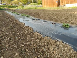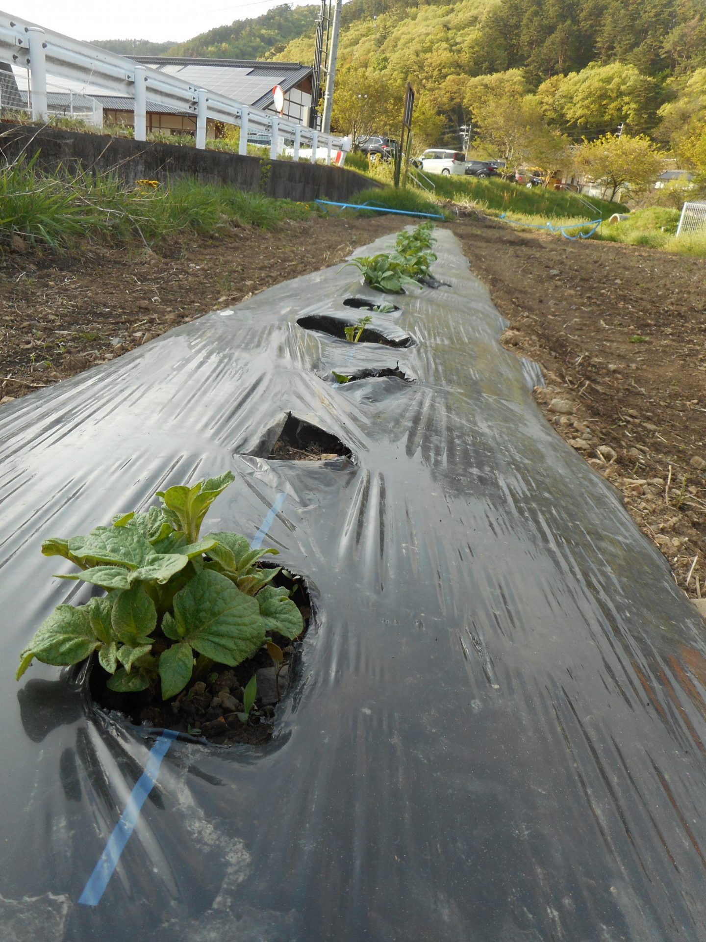 掘った穴に種芋を置き、土の布団を掛け種芋植え完了です。