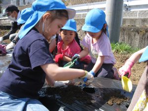 土を掘る作業はみんな結構時間をかけ、苦労している子もいました。