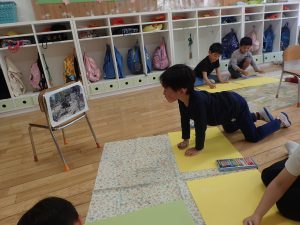 絵の前にいくと、子ども達は真剣な表情!目もキラキラしています!