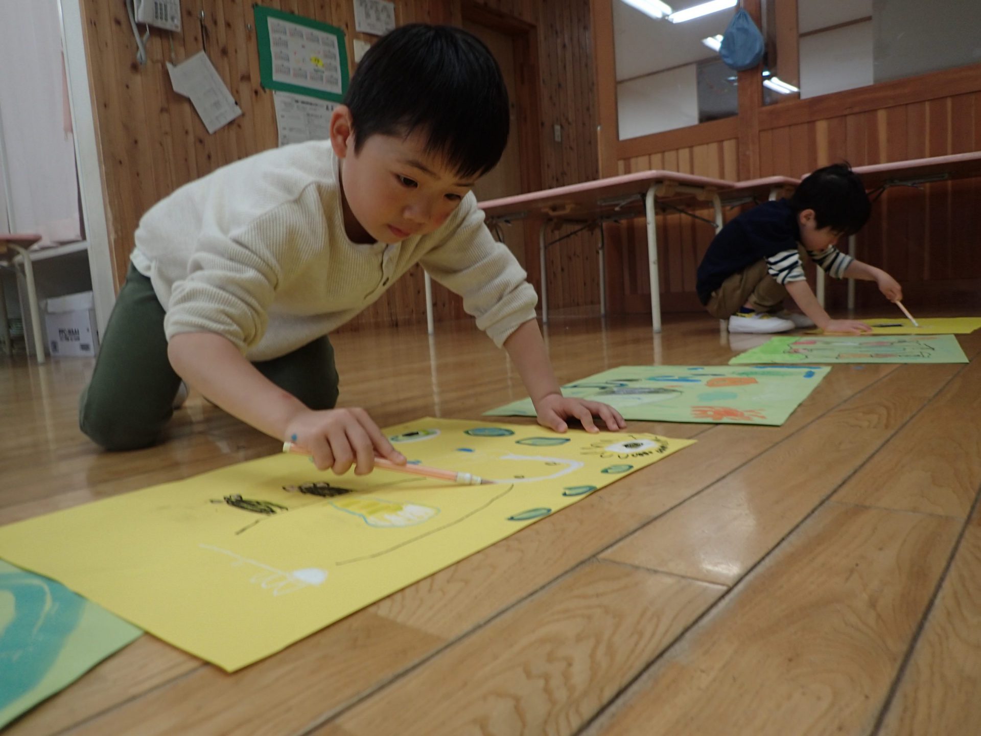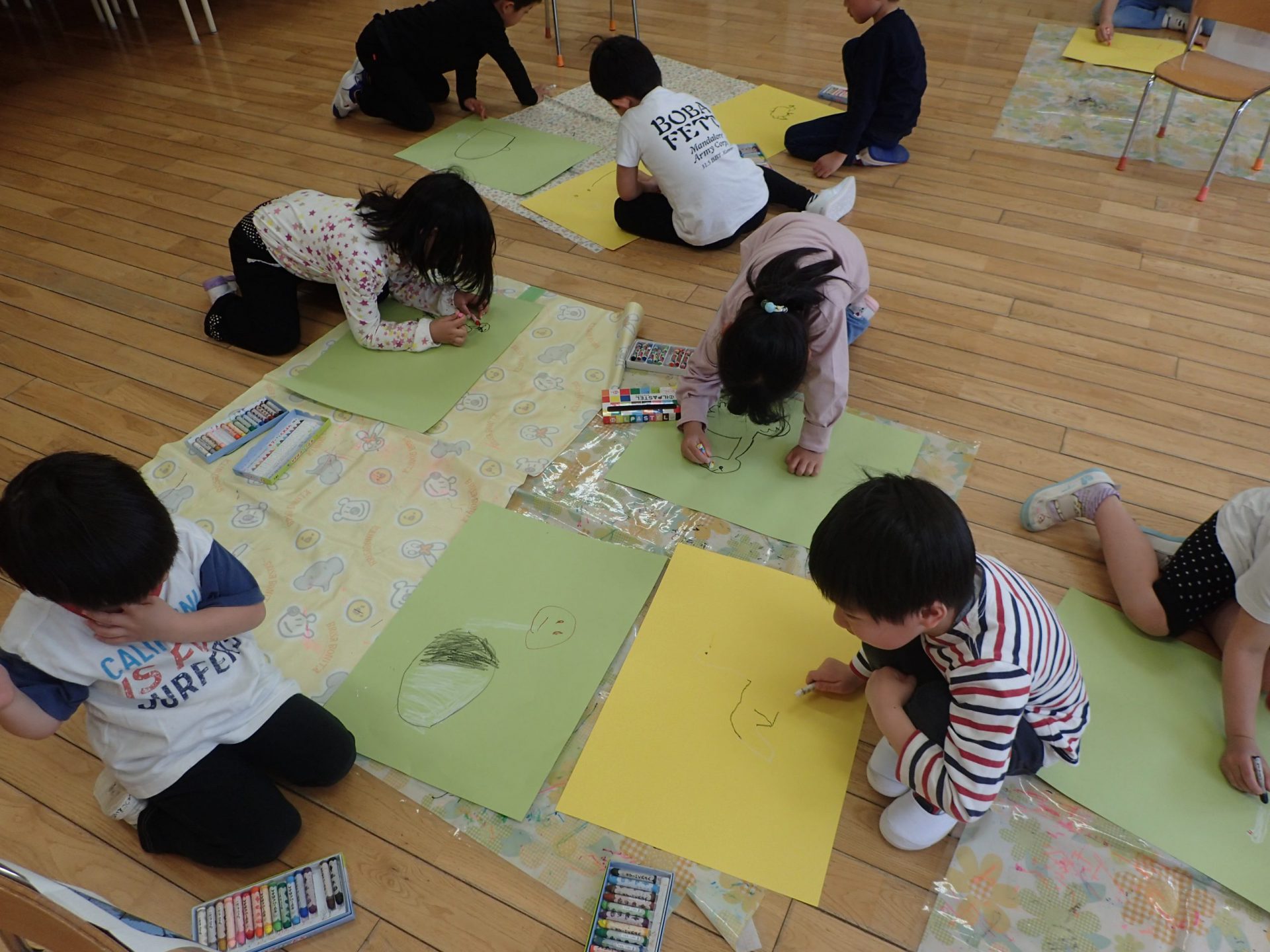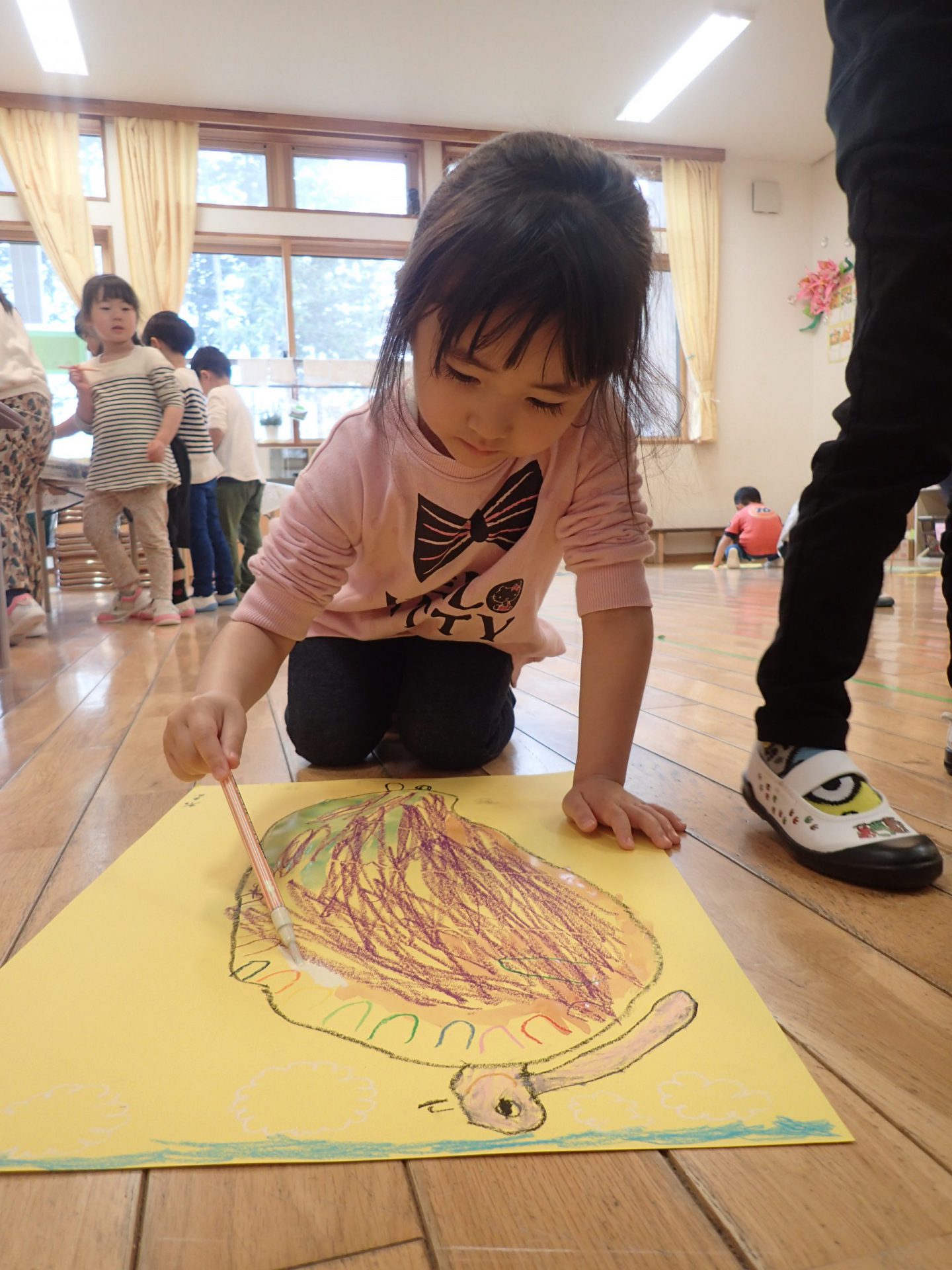 本物と同じように描きたい子。好きな色を使って描く子。それぞれにイメージがあって創造性が膨らんでいます。