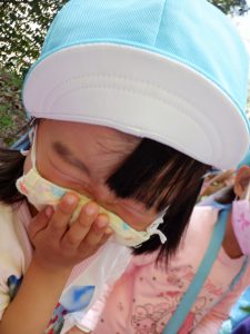 蜘蛛の巣一つ見つけると、うきうきワクワクで避けていく子と、「こわいこわい」とためらう子に分かれます。