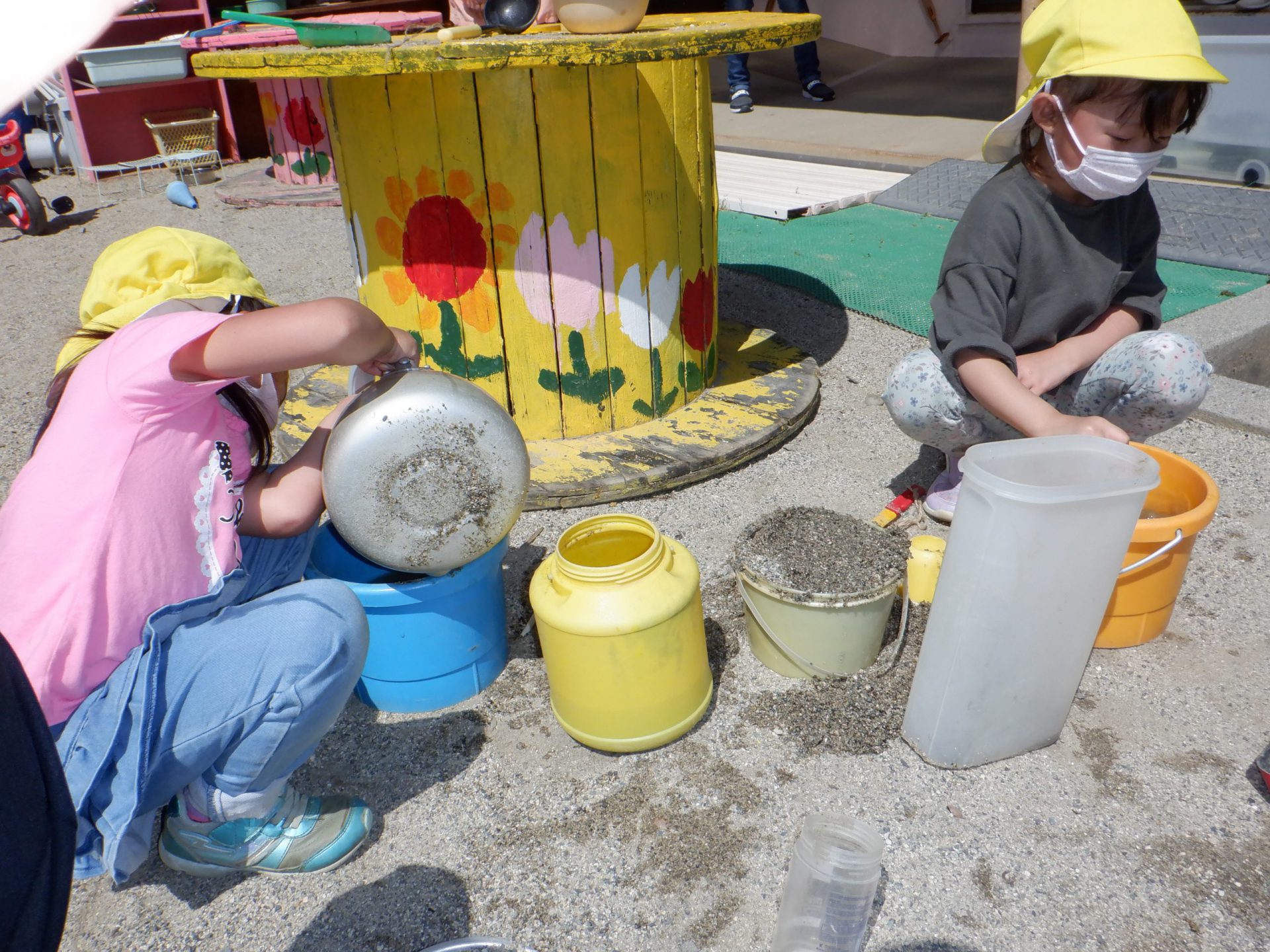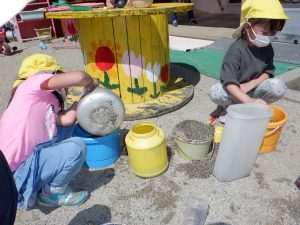 園庭の中で様々な遊びが始まっています。