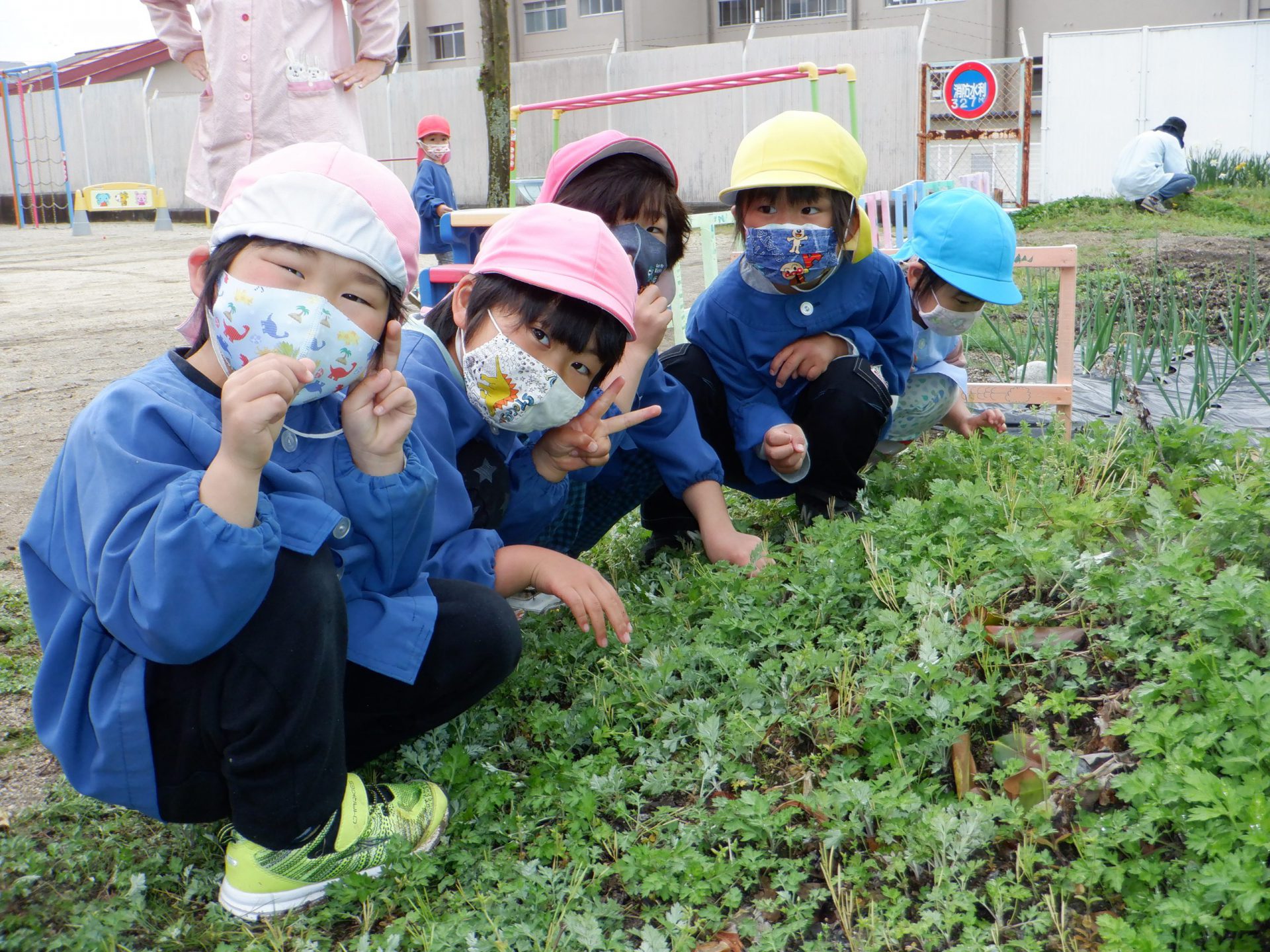 保育園の畑の中に「よもぎ」が出てきました。
