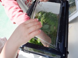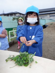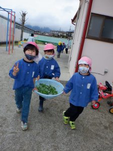 みんなで摘んで給食先生の所へ・・・