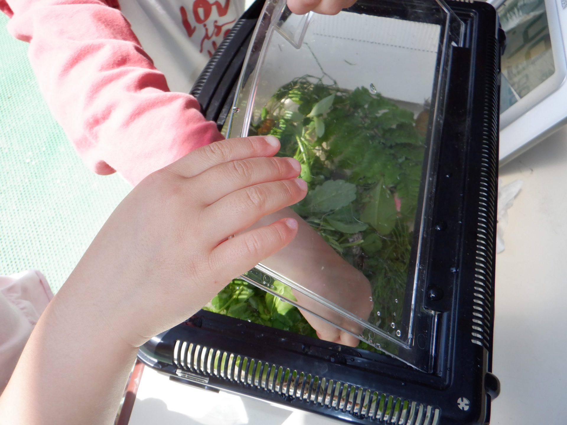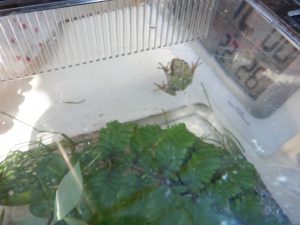 「せんせー、早く早く、カエル入れなきゃ」